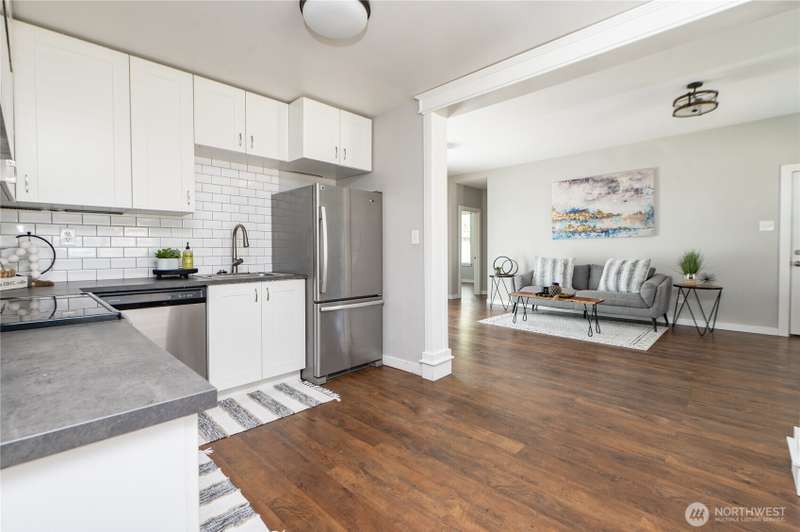 BUYER FINANCING FAILED - BACK ON MARKET DUE TO NO FAULT OF THE HOUSE. Why pay rent when you can OWN this charming home for less than the going rental rates? 2 bedroom/1.5 bath Craftsman rambler updated in 2018/2019: dreamy new kitchen with fresh & modern white cabinets, stainless steel appliances + new windows/doors/trim, roof, interior/exterior paint, laminate flooring, efficient mini split for heating & cooling, H20 tank + 9' ceilings throughout. Room to build a garage + zoning allows for a ADU in that new garage...buyer to verify all details with the City of Blaine to their satisfaction. Don't miss the potential in the attic for storage or...you decide! Fantastic walkable location to the waterfront, schools & bustling downtown Blaine!