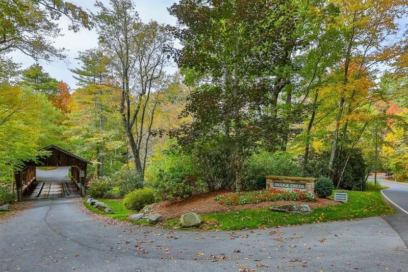 Experience the charm of mountain living in the picturesque gated community of Bridge Creek. This 1.53-acre wooded lot is a rare opportunity, featuring a slightly sloped area ideal for building your dream home, while Knob Creek gently flows along the back of the property. With potential for short-range views, this lot offers a picturesque setting for creating lasting memories. Bridge Creek is thoughtfully designed with outstanding amenities, including a covered bridge entrance that invites you into this tranquil neighborhood. Enjoy the beautifully landscaped Chimney Garden, perfect for gatherings, along with a fishing and swimming pond, a waterfront fire pit, and scenic hiking trails that connect you to nature. Practical features include community water, electric service, and underground utilities for convenience and ease in building. Located near Cashiers, Lake Glenville, and Highlands, Bridge Creek places you close to water sports, fishing, exceptional dining, and local entertainment. Build your vision in this beautifully maintained mountain community that offers both peaceful surroundings and convenient access to nearby attractions.