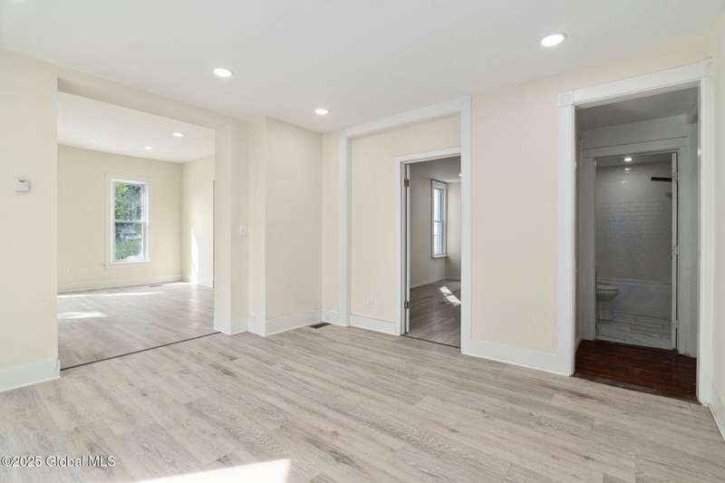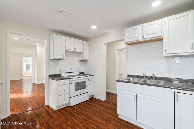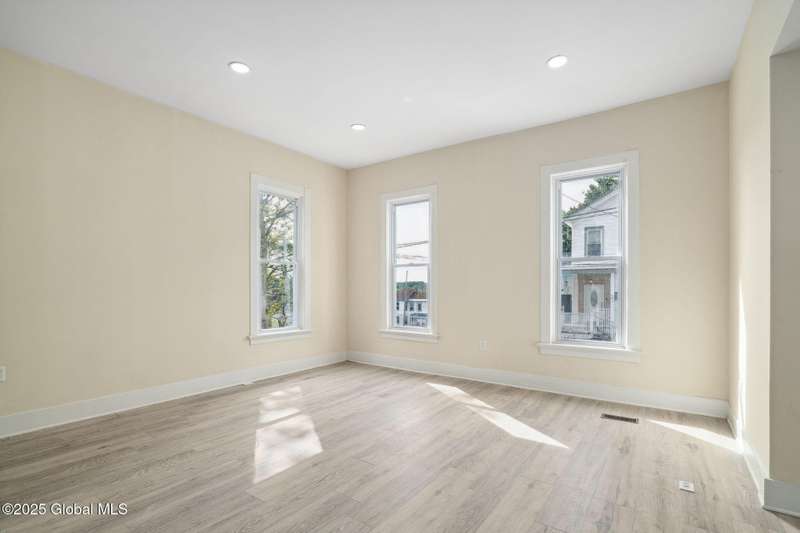 Move-in ready and fully renovated 2-family home! Each spacious unit features 9' ceilings, recessed lighting, new laminate hardwood flooring, fresh paint, and new appliances. Updated electric, plumbing, newer furnaces, and separate utilities. First floor offers 2 large bedrooms, living and dining rooms, and an eat-in kitchen with new cabinetry. Second floor includes 3 bedrooms plus a potential 4th bedroom/office/playroom, side deck, and enclosed back porch. Oversized 2-car garage, partially new concrete driveway, and new fencing. Low taxes! Perfect for owner-occupant, investor, or multi-generational living. A fantastic opportunity!