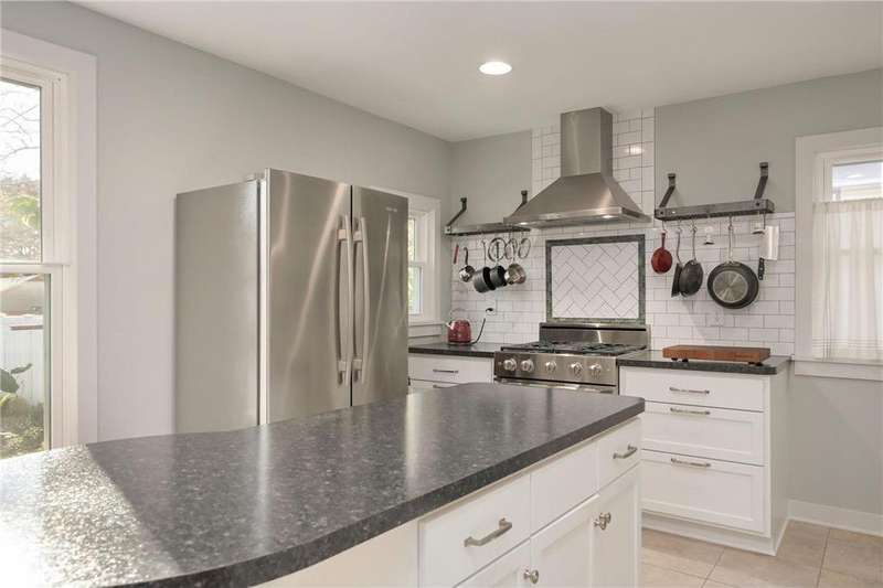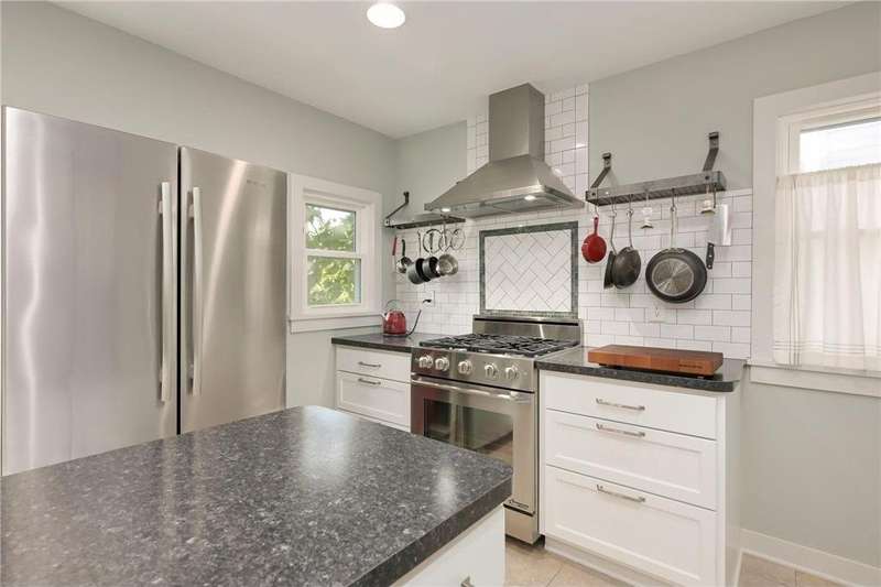 The incredible on-trend, recently updated kitchen is the crown jewel of this home in sought-after Midway. Lush gardens on a pretty lot, concrete patio, and a super nice two car garage. The living room features a large picture window. Formal dining is right off the kitchen. A huge three season porch could fit lots of furniture, probably even a hammock. Two bedrooms upstairs and a bath with a clawfoot tub. Basement rec room with groovy finishes – update to your own taste or use it as a vintage hideaway. Basement shower. Easy transit options. Close to shops, breweries and the stadium.