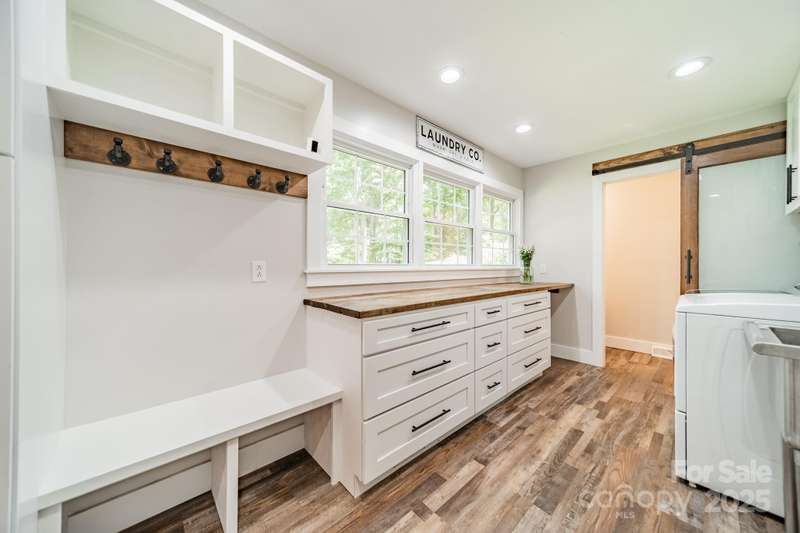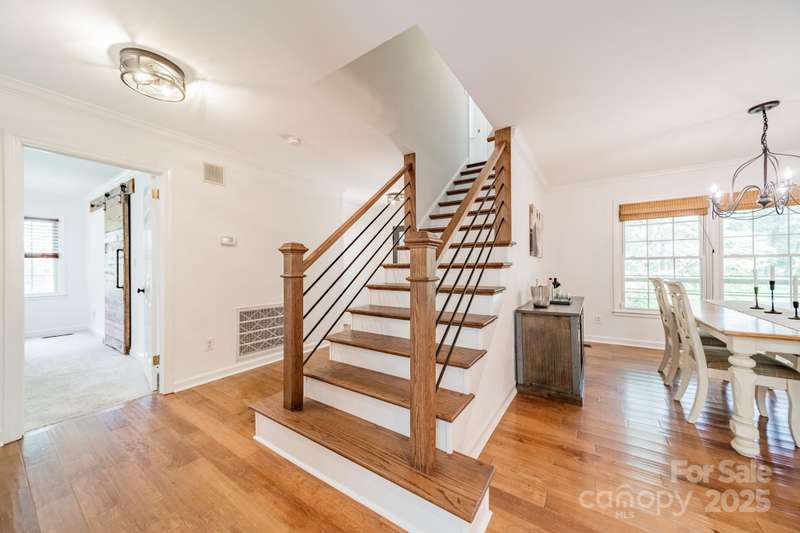 Comfort meets elegance on this sought after Valhalla Farms 2.5 acre estate. Stunning 5 bedroom, 3.5 bath sophisticated farmhouse combines timeless style with contemporary convenience. Classic white facade with wood and black trim accents exude an inviting charm that sets the perfect tone for what lies inside. Gorgeous rocking chair front porch just waiting to be your morning coffee spot! Step inside to discover a spacious and airy open floor plan, ideal for entertaining as well as family gatherings around the magnificent wood island sourced from an old mill. Retreat to the screened porch and large deck with lush hydrangea surround! Large primary bedroom on main and updated bath with soaking tub, separate tiled shower and dual sink vanity. Enjoy the expansive walk-in custom closet fully organized for both wardrobe and accessories. Four generously sized bedrooms upstairs share a double sided pass thru bath complete with two separate sinks and toilets for ease of use! Fully finished daylight walk out basement (with a full bathroom) is a great space for a game room, gym or theater! Detached outbuilding is a wonderful workshop, gym (has a mini split in one half) or would be an excellent pool house or barn! This farmhouse is not just a home, it's a lifestyle. Tranquil country living just minutes to shops and restaurants. All in the award winning Marvin Ridge school system! The Valhalla Farms neighborhood has a separate pool and tennis club you can join (pickleball on tennis courts)!