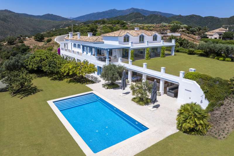 Perched on a rare flat double plot spanning 6.950m2 within the exclusive and secure enclave of Monte Mayor, this cortijo, style villa is a true andalucian sanctuary. Accessed via a 150meter private driveway, the property immediately impresses with its authentic charm, sense of privacy, and sweeping views of the sea and surrounding mountains. Framed by mature pine and olive trees, the estate blends effortlessly into its natural surroundings. Each room and terrace offers a unique and elevated view, wether it´s the glistening Mediterranean, the rugged contours of the mountain foothills, or the beautifully landscaped andalusian gardens. With nearly 700m2 of south-facing interior space, the home is thoughtfully designed for relaxed living and entertaining. Five en-suite bedrooms, expandable to six, are complemented by bright open-plan living areas, a home cinema, and a games room. Outdoor spaces feature a poolside bar, barbecue area, and expansive terraces for year-round enjoyment. The architecture reflects classic andalusian style, with a romantic central patio, whitewashed walls, blue shutters, and a layout that balances family comfort with refined hosting areas. From breakfast in sunlit spaces to shaded afternoon retreats, sunset drinks on the terrace, and dinners under the stars, every part of the home is designed to be enjoyed. Elevated above the bustle of the coast, it offers a peaceful sanctuary close to all the amenities of the Costa del Sol. This is more than a home, it´s an immersion in the natural beauty and traditional elegance of the tranquil andalusian lifestyle. Welcome to your private hideaway above Marbella. Contact us today for your exclusive viewing.