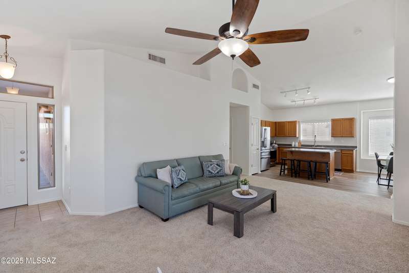 This inviting four-bedroom, two-bathroom home sits on a large lot with Mountain View's and only one neighboring property to the side. The split floor plan features vaulted ceilings and an open layout that creates a bright, airy feel throughout. The interior has been freshly updated with new paint, carpet, and kitchen tile. The kitchen includes stainless steel appliances and plenty of space for cooking and entertaining. Enjoy the expansive yard--perfect for outdoor living and gatherings. Conveniently located near the freeway, restaurants, and shopping, this home is nestled in a desirable subdivision that offers both comfort and convenience. A wonderful place to call home!