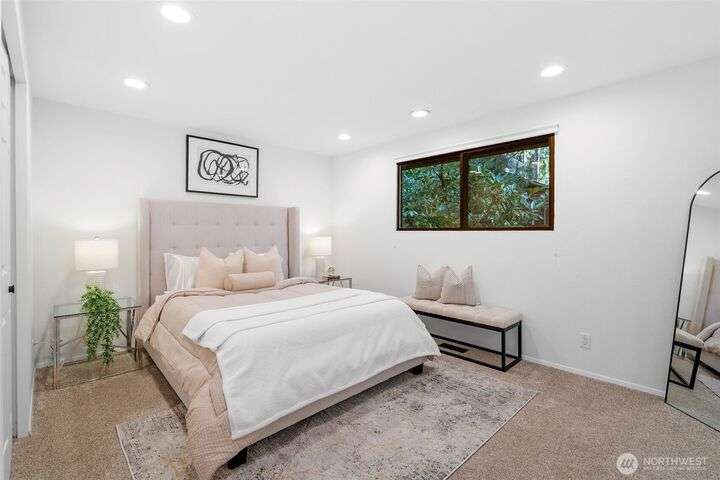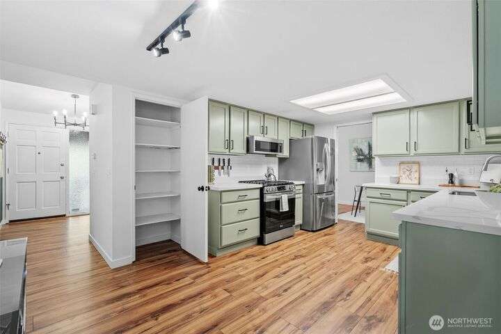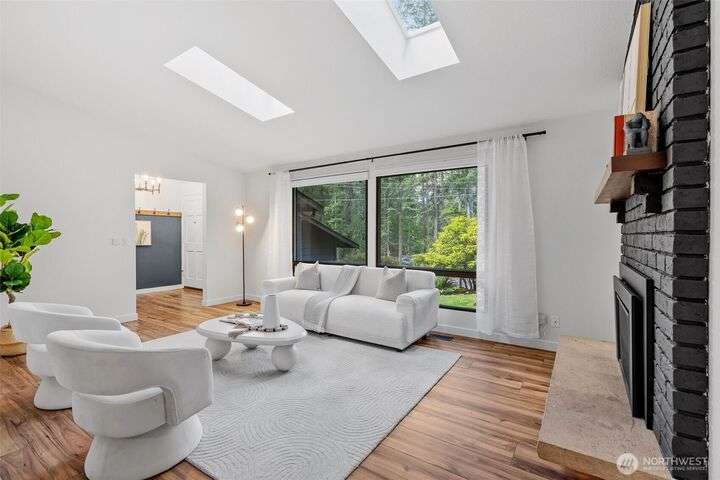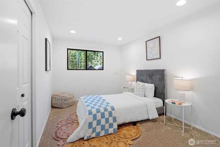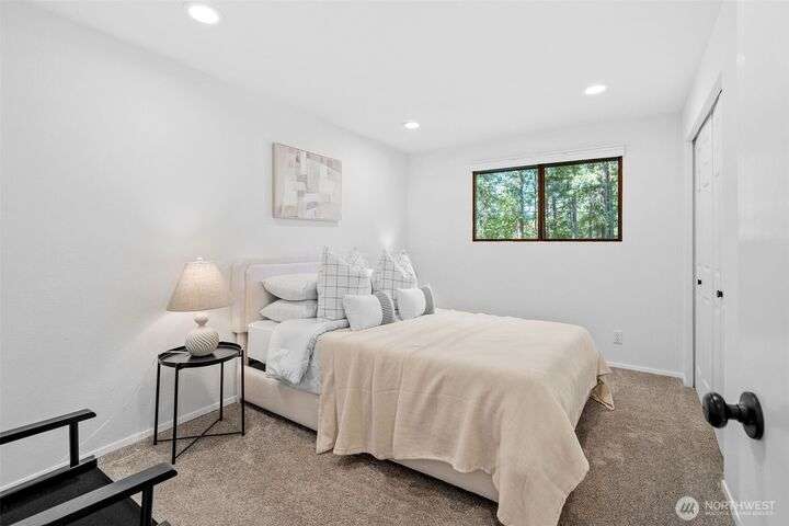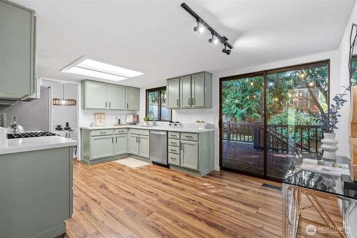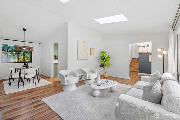 Nestled in a beautiful park-like setting, this beautifully updated tri-level offers comfort and flexibility on a spacious corner lot. Relax in the large living room with vaulted ceiling and picture window, or gather in the bright kitchen with quartz counters, eating area, and access to a wood deck—perfect for entertaining. Three bedrooms, 1.75 baths, plus a lower-level bonus room provide versatile living space. Fully updated inside and out this stunning home is move in ready. Over ¼ acre with room for RV parking, sport court, or outdoor living while being close to Pine Lake, Beaver Lake, trails, and top-rated schools, this home is a must see!