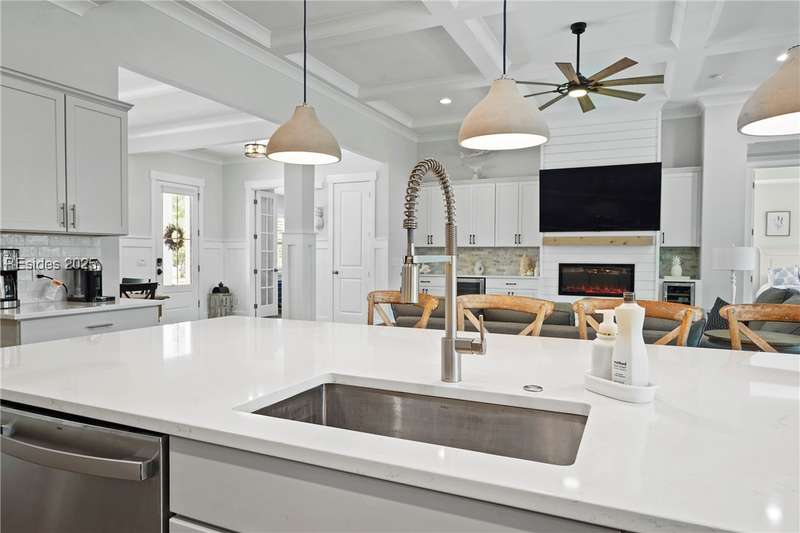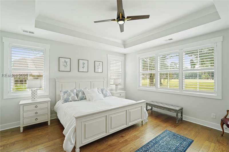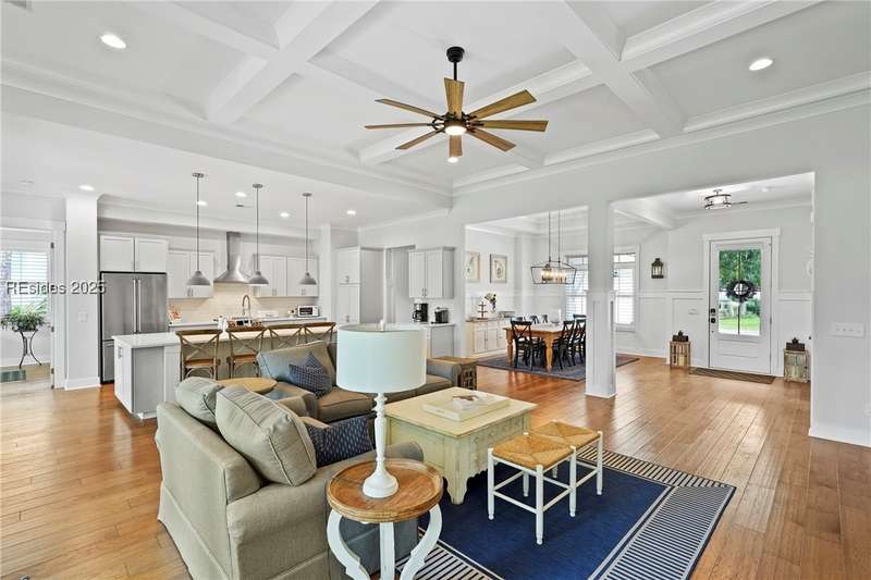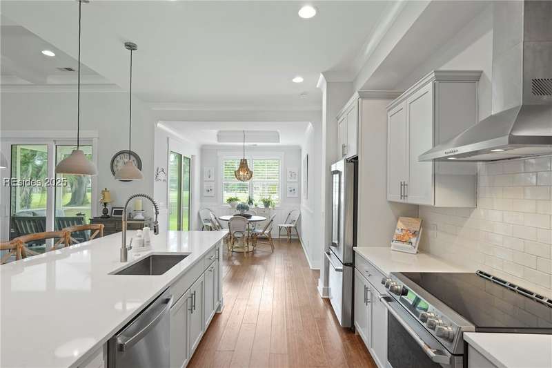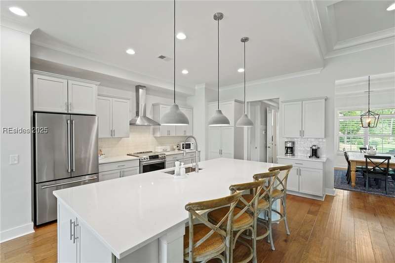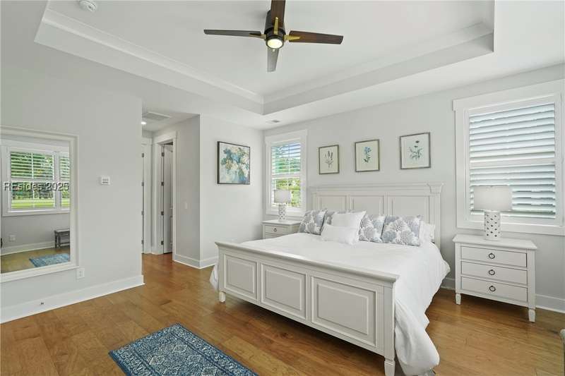 Stunning 2020-built 4BD/4.5BA + office home in gated Moss Creek! Gourmet kitchen with quartz counters, GE Caf appliances, custom cabinets & induction cooktop. Designer tile baths with edgeless walk-in showers & upgraded vanities. Coffered 11' ceilings, extensive woodwork, wood floors, plantation shutters & premium lighting. Epoxied garage, screen & front porches. Amenities: golf, marina, pools, fitness, tennis, pickleball & more! Furniture available.