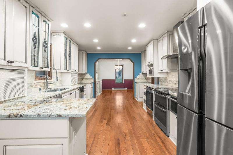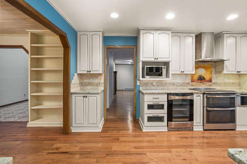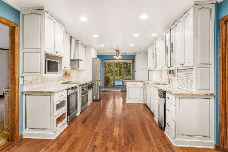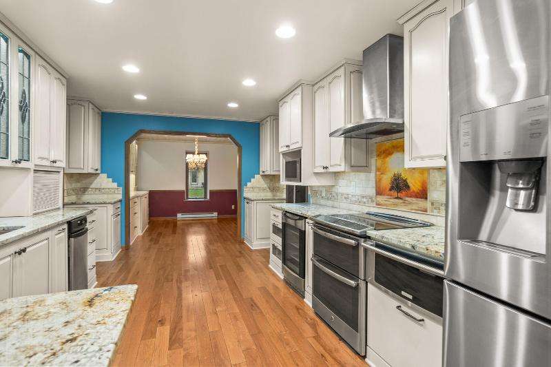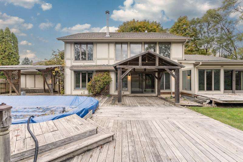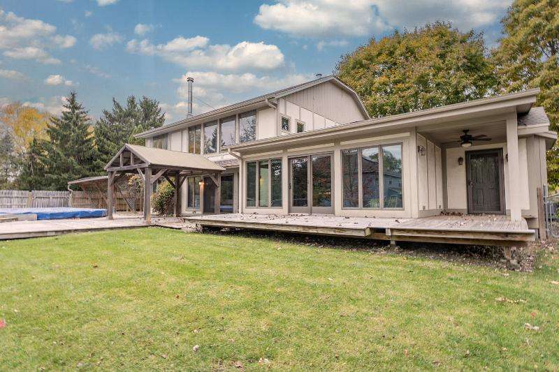 This one-of-a-kind home blends timeless colonial style with a spacious envelope design and a thoughtfully designed en-suite addition. Step into the updated kitchen & dining area featuring custom built-ins. The cozy LR/den offers a two-way natural fireplace & patio doors leading to a bright envelope sunroom plus access to a charming gazebo via sliding doors. Upstairs the original primary suite features a sitting room & door leading to an overlook to the sunroom below, complemented by two additional bedrooms. The en-suite addition includes a 4th bedroom plus 5th primary en-suite with private sunroom complete with wet bar -- ideal for guests, in-laws or full time primary. Lower level has a rec & bonus room. Partially finished bedroom, bath & workout room. See MLS Documents for details.