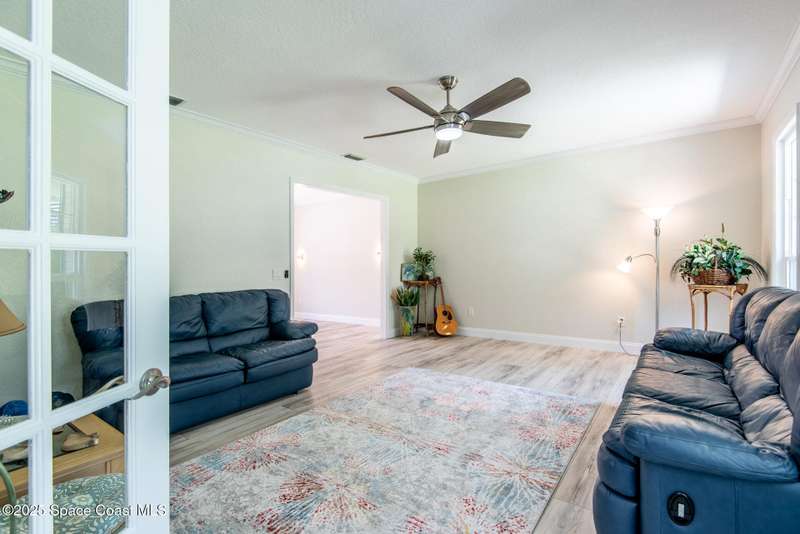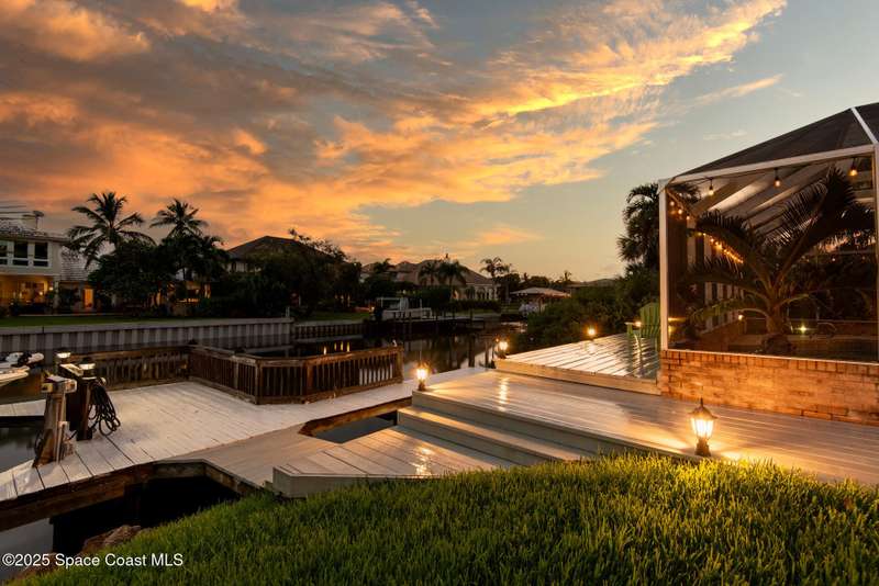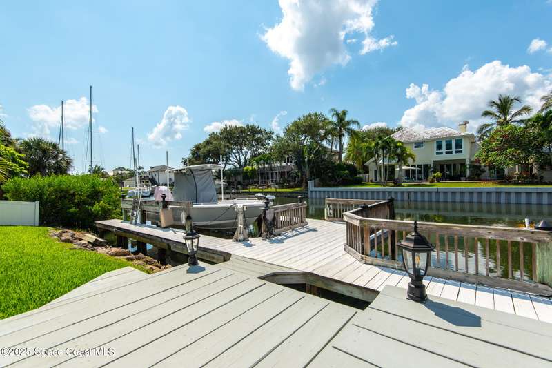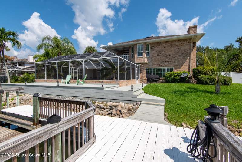 Exquisite canal front residence in the amazing Windward Cove subdivision in the Kiwi Racquet and Fitness Club neighborhood offers luxury living with four bedrooms, three bathrooms, and an impressive 3,643 sq ft of meticulously crafted interiors. A boater's dream, the property boasts 97 feet of pristine water frontage, a private dock with a boat lift, brand new deck and direct access to navigable Banana River. The screened-in pool and spa outdoor provides splendid entertainment. Living room with gas fireplace overlooking the amazing spacious kitchen with island, granite counter tops and fully remodeled cabinets. All three bathrooms tastefully remodeled. Hurricane impact windows provides the perfect comfort in Florida living. New roof in 2021 and the whole house with high end luxury lifetime vinyl plank floor. This rare waterfront sanctuary seamlessly combines elegance, exclusivity, and the ultimate coastal lifestyle.