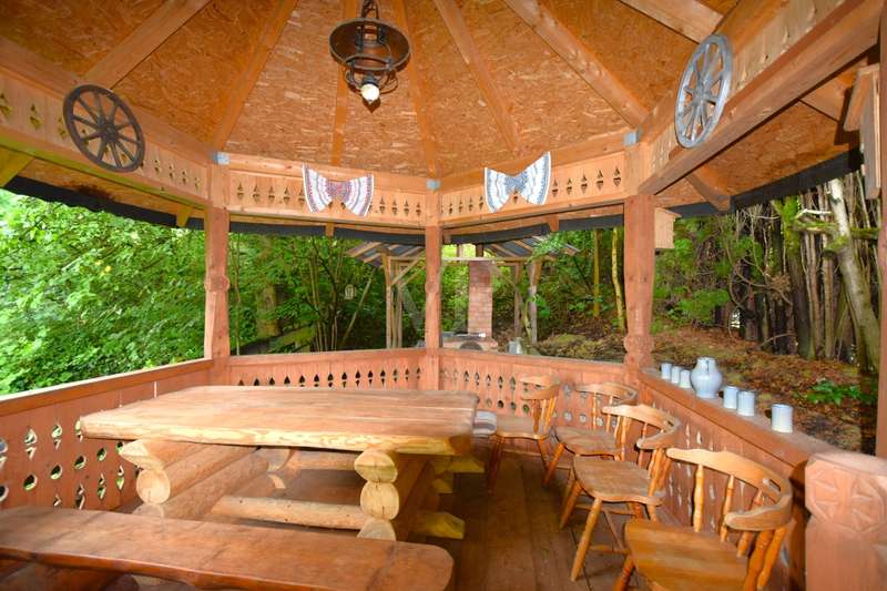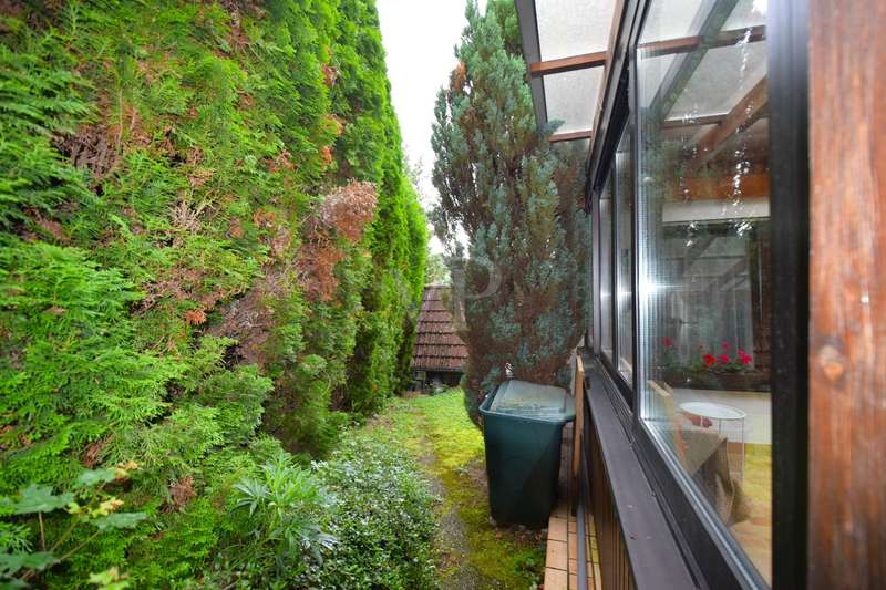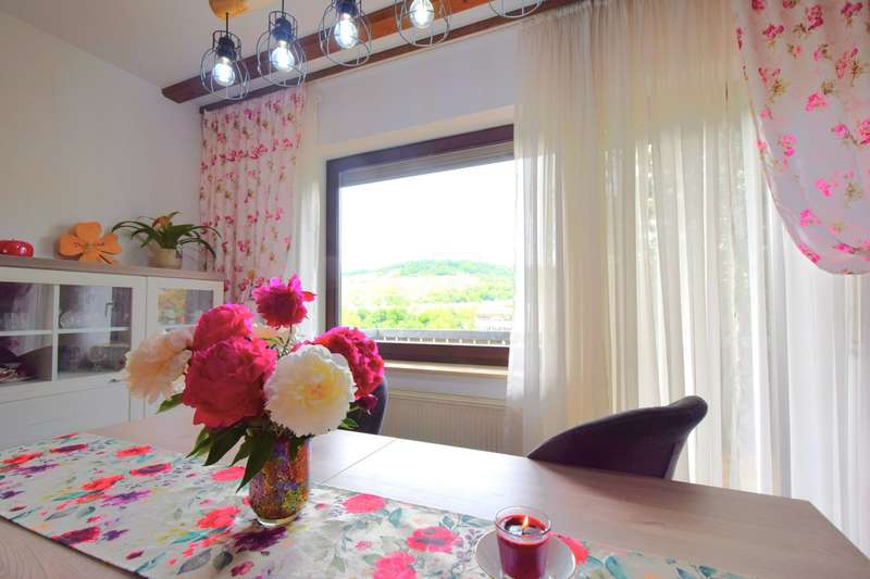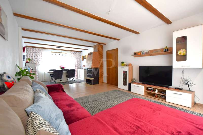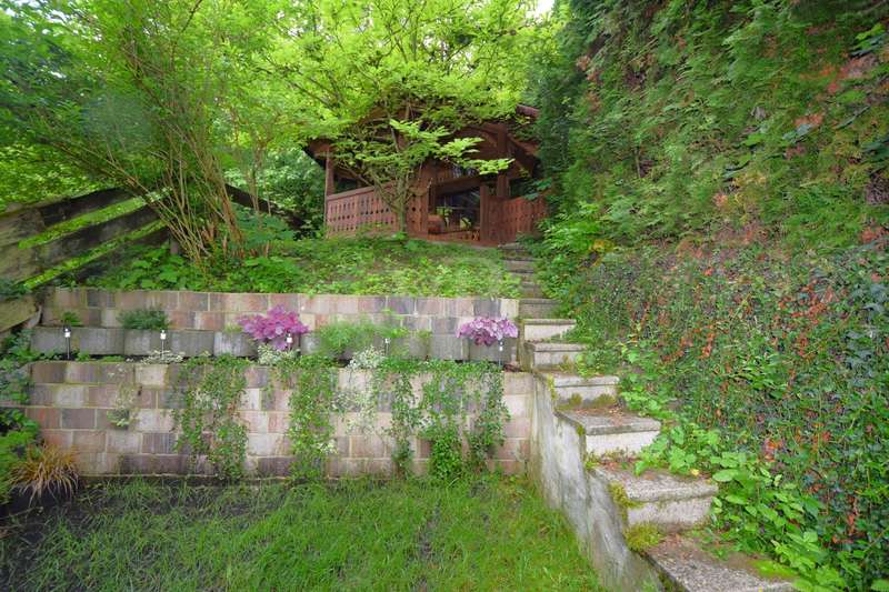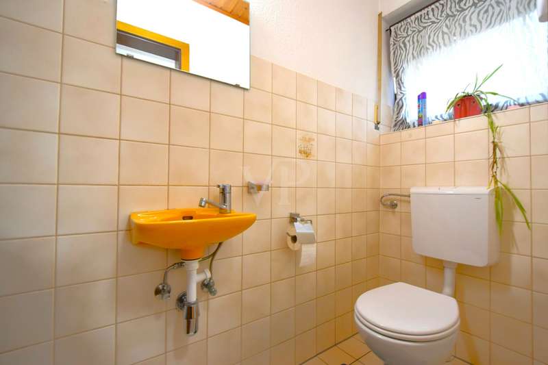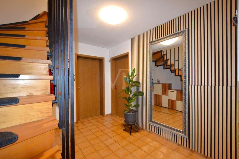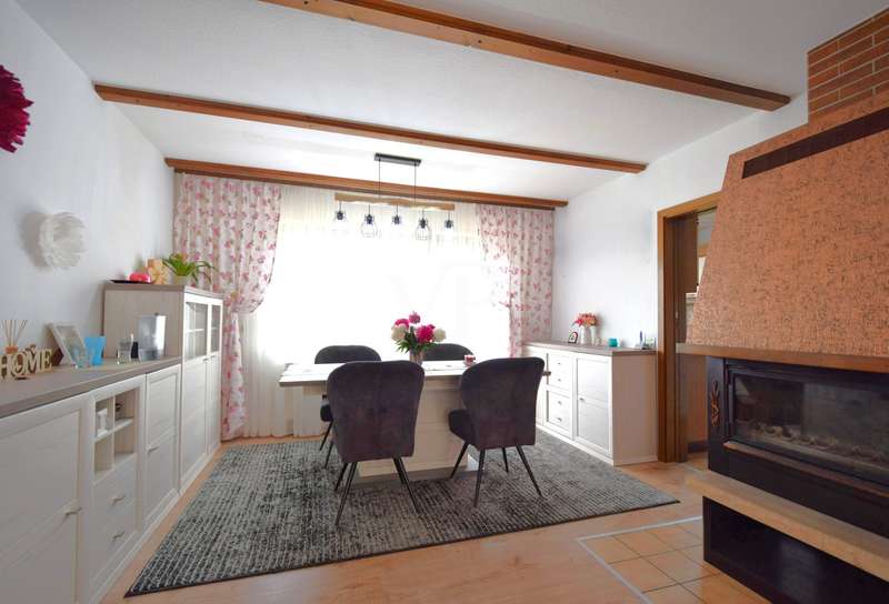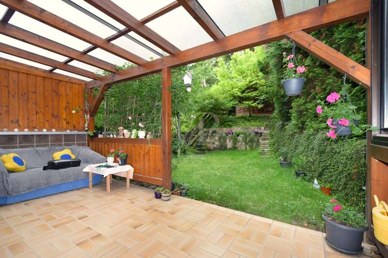 This well-kept end terraced house was built in 1983 as a solid construction and offers a well-designed home on a beautiful plot. The property boasts a clear room structure, practical furnishing details and a family-friendly location. Basement, functional and comfortable: As soon as you enter the house, you are greeted by a neat entrance area. Directly adjacent is a guest WC with shower, ideal for visitors or as an additional bathroom area. A generously proportioned guest room invites you to linger or is also perfect as an office or hobby room. A separate laundry room and a cellar room provide useful storage space. The hallway clearly connects all rooms. First floor, the center of family life: The heart of the house is the bright living and dining room with fireplace and direct access to the terrace and balcony. The spacious living and dining area impresses with its modern, open design with exposed wooden beams and a well-kept laminate floor. From the living area, you have direct access to the covered, wind-protected terrace, ideal for breakfast or relaxing hours outdoors. The open connection from the dining area to the adjoining kitchen is particularly practical. This is equipped with a functional fitted kitchen and offers plenty of storage space as well as optimal work surfaces for everyday use. A brick fireplace creates a cozy atmosphere in the living area. From the dining area, you can also enjoy a beautiful view of the nearby Lichteneck castle ruins. A further WC completes the practical facilities on this floor. Second floor, a retreat with potential: A spacious children's room awaits you on the upper floor, which can be used in a variety of ways as a children's room, teenager's room, study or guest room. The master bedroom offers a pleasant retreat with plenty of peace and comfort. The warm wood paneling on the walls and ceiling creates a particularly cosy atmosphere that invites you to relax and feel good. A large window with opaque curtains provides plenty of natural light and privacy at the same time. The room layout offers enough space for a large bed as well as additional furniture such as chests of drawers or bedside tables. An additional platform creates flexible usage options, e.g. as a storage area. The bathroom is functionally designed and rounds off the space on offer. Here too, a central hallway provides a good connection between the rooms. Outdoor area, plenty of space to live and enjoy: The plot is easy to maintain and offers plenty of space for relaxation, gardening or play opportunities for children. A special highlight of this property is the lovingly designed wooden pavilion in the garden. Built in a traditional style, it offers a rustic atmosphere with its rustic wooden benches and chairs and is perfect for cozy evenings with family and friends. The open roofed construction provides protection in all weathers and is surrounded by greenery, which conveys a feeling of peace and closeness to nature. Decorative elements such as carved wooden details give the pavilion additional charm. There is a brick-built brick oven in the field of vision, ideal for barbecues or cozy get-togethers on cooler days. Here you can enjoy cosiness right on your doorstep, a real retreat with a feel-good factor. There is also a hobby room, a separate wood store and a parking space. The garage offers protection for your vehicle and additional storage space. For further information and a viewing request, please contact us at any time. Your VON POLL real estate team Schwäbisch Hall