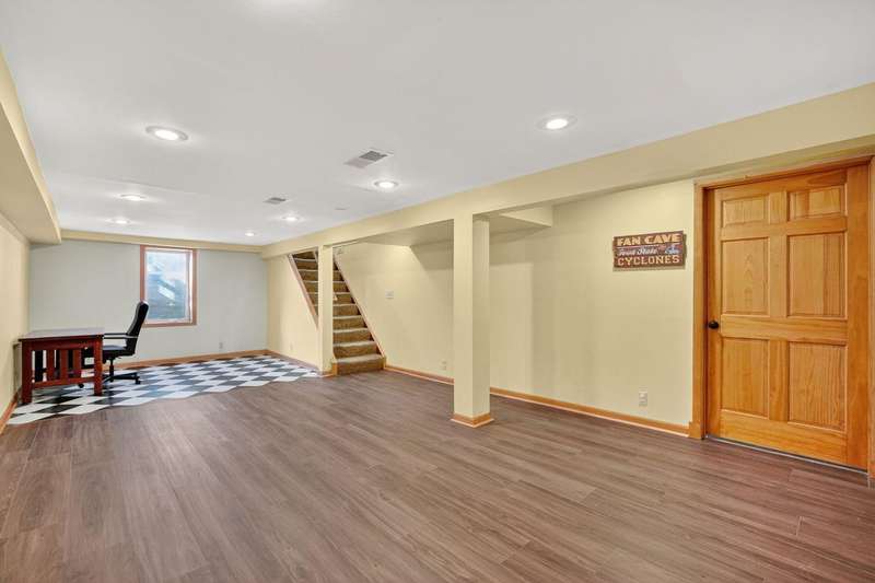 Charming 1945 cottage in downtown Ames! Full of character and warmth, this well-cared-for home features beautiful hardwood floors, original wood trim, and classic six-panel doors. The south-facing living room is inviting and filled with natural light. The kitchen makes excellent use of space with updated oak cabinets and a dishwasher. Down the hall are two comfortable bedrooms and a full bath with a tub, built-in storage, and a convenient laundry chute. The nicely finished lower level with an egress window is a rare find for a home of this age, perfect for a family room or potential third bedroom. The laundry area includes a toilet and utility sink, making a future second bath an easy addition. You'll love spending time outside admiring the tree-lined streets, cottage-style landscaping, and large fenced-in yard. Enjoy year-round comfort with vinyl windows, maintenance-free aluminum siding,, and a new HVAC system. All this just blocks from downtown restaurants, shops, and parks!