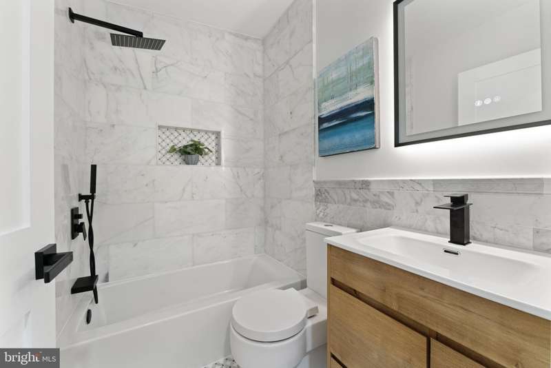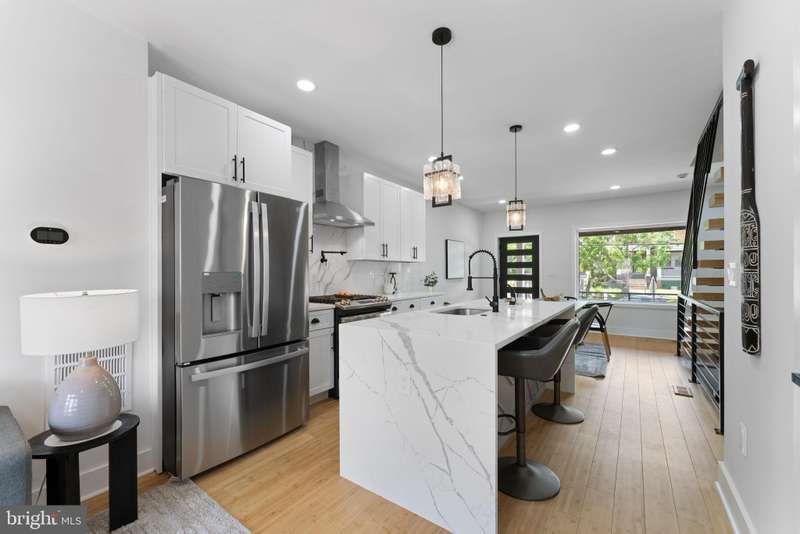 Welcome to 5123 8th St NW, a fully renovated rowhome in the heart of Petworth. This thoughtfully redesigned home spans three levels of elevated living, featuring high-end finishes, refined custom details, and a fully finished lower-level suite with its own entranceideal for guests, extended family, or rental income. Just reduced by $50,000, this is a rare opportunity to own a designer home with premium finishes and built-in rental potential at a significantly improved value. The main level boasts an open-concept layout flooded with natural light, wide-plank hardwood floors, and striking custom millwork that runs across all three levels of the home. The kitchen is a true showpiece with Calacatta quartz countertops, a dramatic waterfall island with built-in microwave, two-tone cabinetry featuring wood base cabinets, and a sleek pot filler over the gas range. Matte black hardware and designer lighting add style and contrast, while the accordion doors open to a private deck and fenced backyard with secure off-street parking. Upstairs, you'll find two spacious bedrooms, two full bathrooms, and a versatile den that makes for the perfect home office or nursery. The primary suite features a spa-inspired en suite bathroom with dual vanities, backlit mirrors, and a rainfall shower wrapped in elegant marble tile. The convenience of laundry on the upper level adds to the home's modern functionality. The fully finished lower levelwith a separate entranceincludes one large bedroom, a full bathroom, a second laundry area, and generous living and dining space. In Petworth, one-bedroom lower-level suites like this can earn $1,900$2,200/month on Furnished Finder, $1,850$2,100/month on long-term leases, or up to $100$140/night on Airbnbmaking this an excellent opportunity to offset your mortgage or generate passive income. Every detail of this home was carefully selectedfrom the designer powder room on the main level to the layered lighting, sleek matte black fixtures, and premium finishes throughout. Perfectly located near Metro, bus lines, parks, and the dining and shopping on Georgia Avenue, this home offers sophisticated city living with unmatched flexibility. Whether you're looking for a forever home or a smart investment, 5123 8th St NW deliversand now at an even better price.