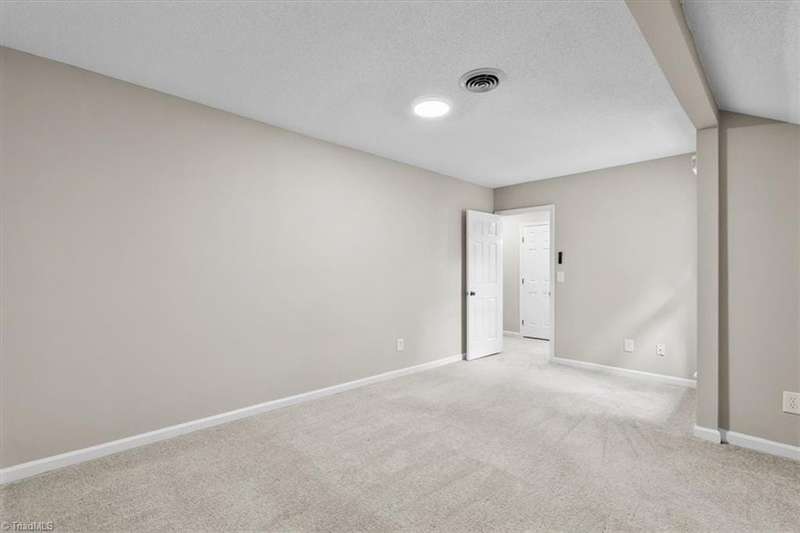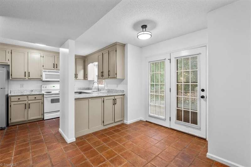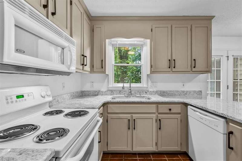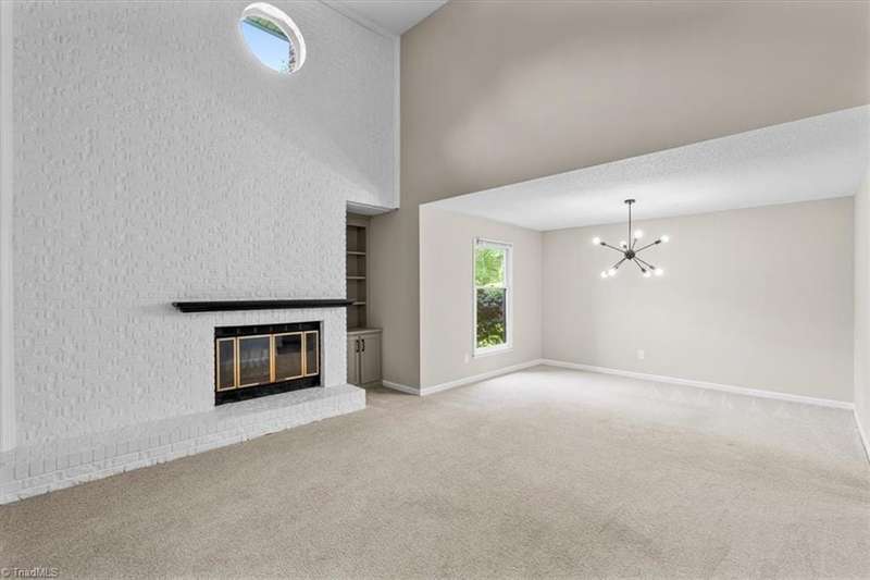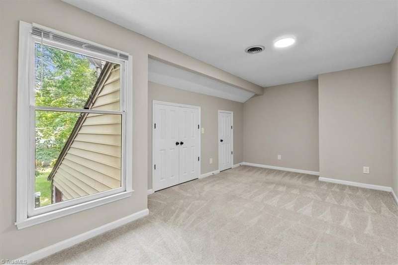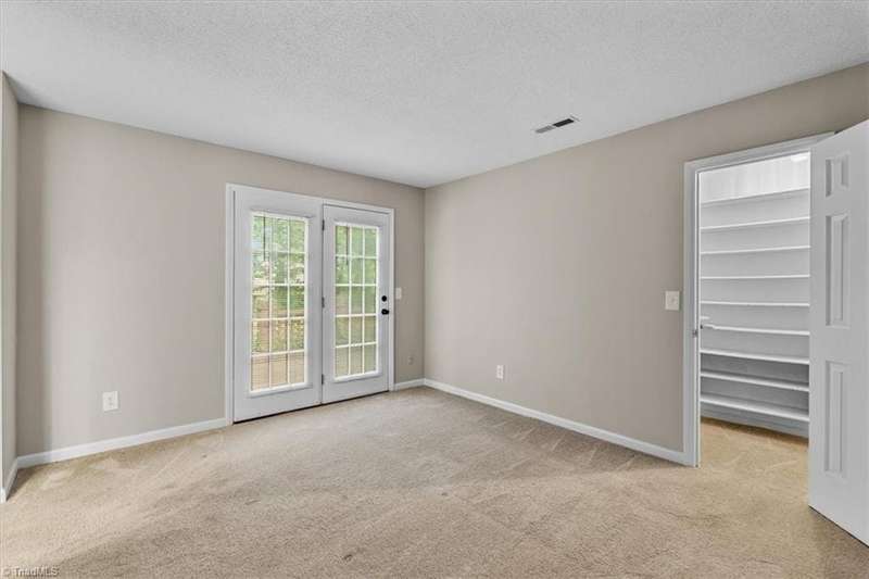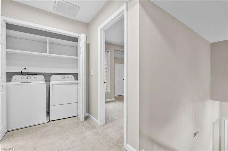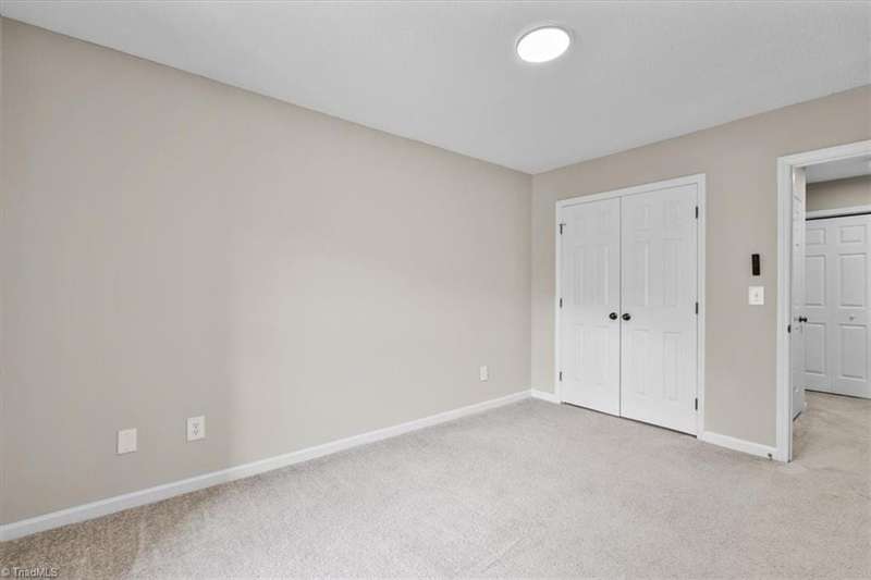 Charming 3 bedroom, 2.5 bath, townhome in Northwest Greensboro. Newly updated bathrooms with fresh tile, new vanities and mirrors. Fresh paint throughout, newer carpet, refrigerator and dishwasher. Main level primary suite with walk in closet that opens to the private patio. Two story great room with fireplace, and built-ins adjacent to dining area. Kitchen features refinished cabinets, new granite countertops and undermount sink. Upstairs has 2 bedrooms and a full bath. Walk in attic for easy access storage. Two assigned parking spaces with community pool. Washer/Dryer included. Neighborhood lies steps from the A&Y Greenway, Military Park & GSO's watershed trails. Approximately 1 mile to Trader Joe's and Home Depot
