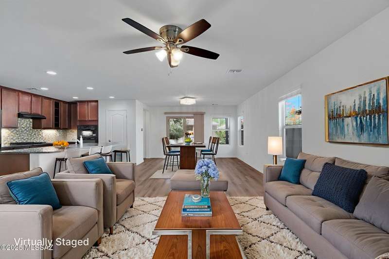 This single-level home in desirable Gladden Farms boasts a modern and low-maintenance layout. An open-concept floor plan offers a spacious living area shared between the kitchen, dining room and bonus room, with convenient access to a patio for effortless outdoor recreation. Split bedroom layout with owner's suite at the back of the home with full-size bathroom. Home has been freshly painted and includes new luxury vinyl flooring throughout the public areas and new carpeting in the bedrooms. Other features of the home include central vac, updated kitchen appliances, landscaped backyard and water softener. This is a must see!