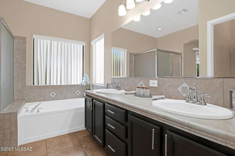 Spacious Silverado Hills Retreat! Welcome to this 3-bedroom, 2-bath + Den/Office home with 2,057sf of comfortable living in the desirable Silverado Hills community on Tucson's East Side. Step inside to find a bright, open floor plan featuring formal living & dining rooms with high ceilings & plenty of natural light. The kitchen offers abundant cabinetry, a breakfast bar/island & easy flow into the breakfast nook & great room - perfect for entertaining. The primary suite is generously sized, with a walk-in closet & ensuite bath offering dual vanities, soaking tub & separate shower. Two additional bedrooms provide flexible space for guests or hobbies. Outside, enjoy Tucson's beautiful desert evenings from the covered patio and low-maintenance backyard. Call today fro your private showing!