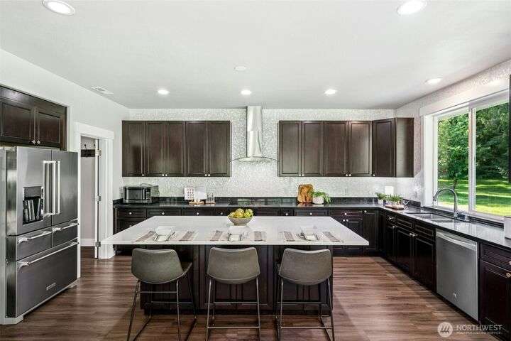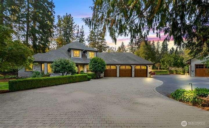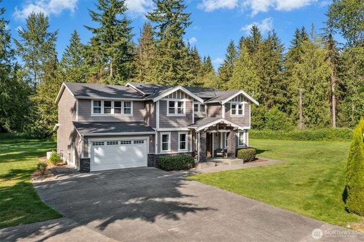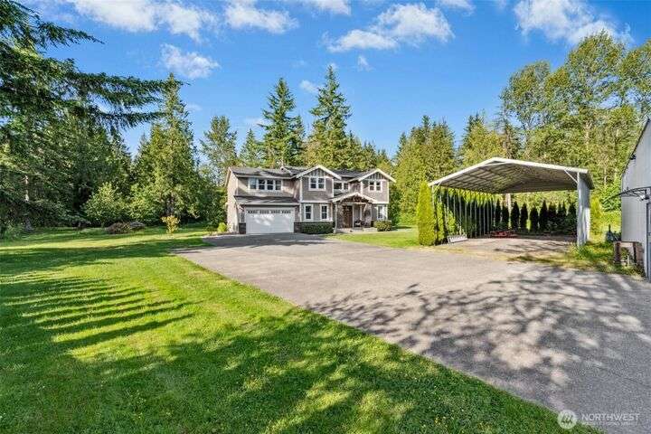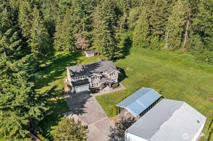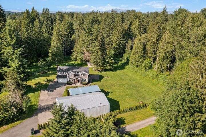 Sprawling Snohomish estate w/ immaculate 2,965 SF house & 2,865 SF detached shop on 5.87 acres! Built in 2017, this 4 BD, 3 BA home feat light-filled main level w/large chef’s island kitchen w/high-end appliances & designer tile, walk-in pantry & mudroom, living room w/fireplace & elegant dining room. Spacious primary BD w/ensuite bath & walk-in closet. 3 more upper BDs & family room. Covered porch & extensive surrounding patios. Detached shop w/studio space, BD & ¾ BA – perfect for in home businesses or guest apartment. 6+ parking spots in the shop & carport w/space for RV/boat/toys of all types! Idyllic & sunny setting w/ chicken coop, beautiful level lawns & wooded areas beyond. Don’t miss this amazing opportunity in sought-after Maltby!