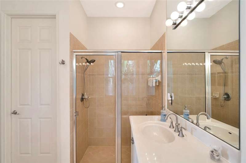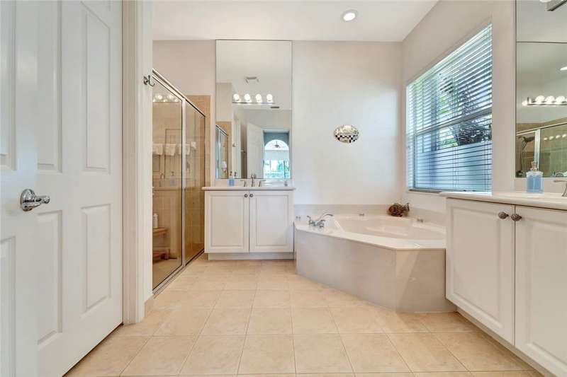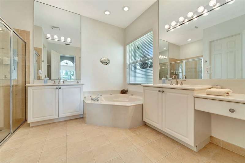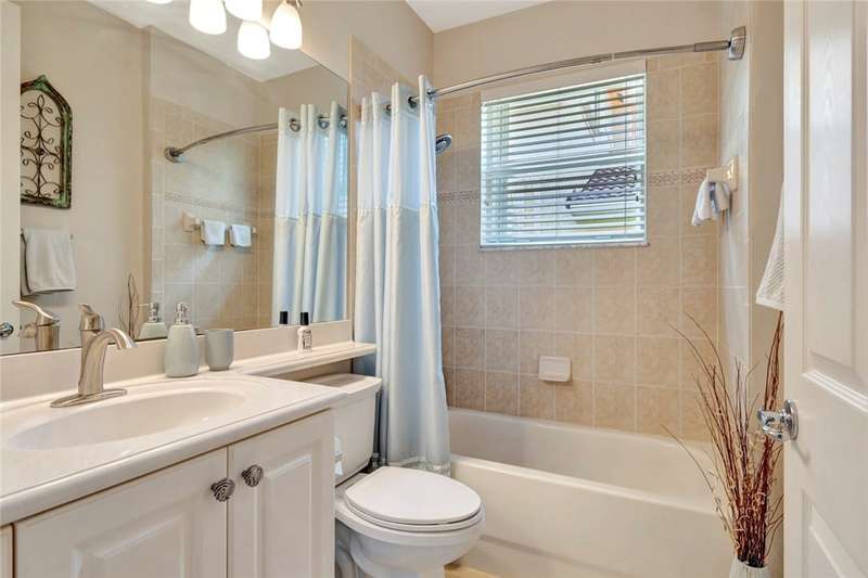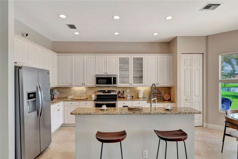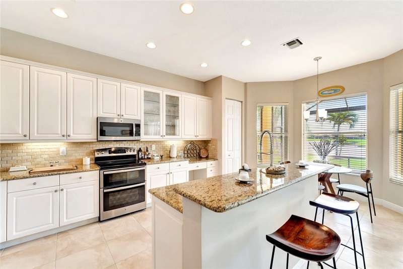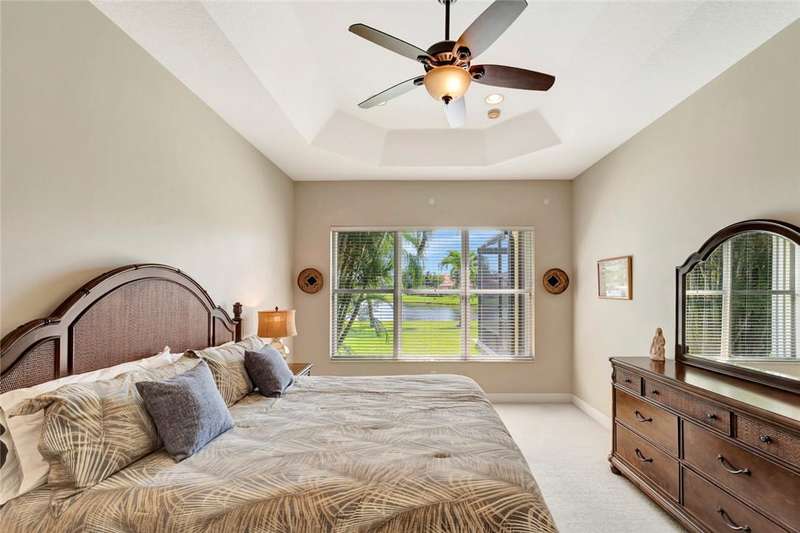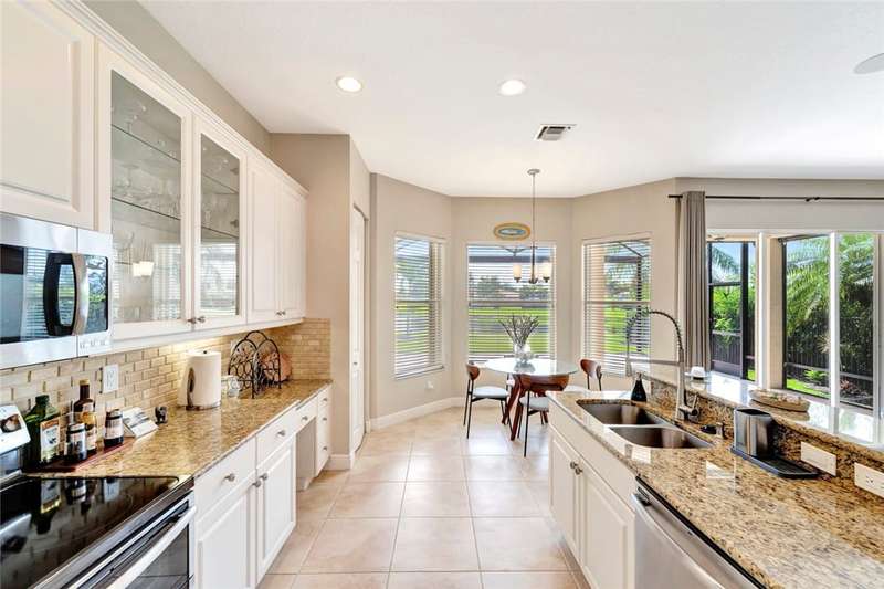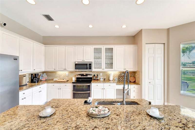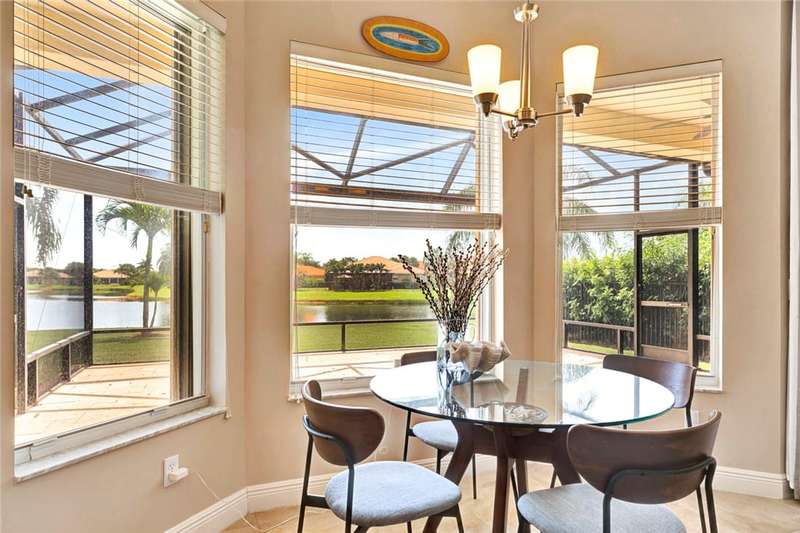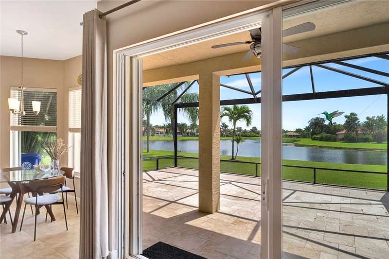 Immaculate lakefront 3BR/2BA home in a sought-after gated community with resort-style amenities! Features a light-filled open layout, soaring ceilings, tile floors, accordion shutters, water filtration system, HWH 2022, and a beautifully upgraded kitchen with SS appliances, double oven, granite c-tops, and custom pantry pull-outs. The spacious primary suite offers dual vanities and a garden tub. Enjoy stunning long lake views from the extended covered porch with travertine pavers and clear view screening. Amenities include a pool, clubhouse, pickleball, fitness center & more! szeaproxsbj2err