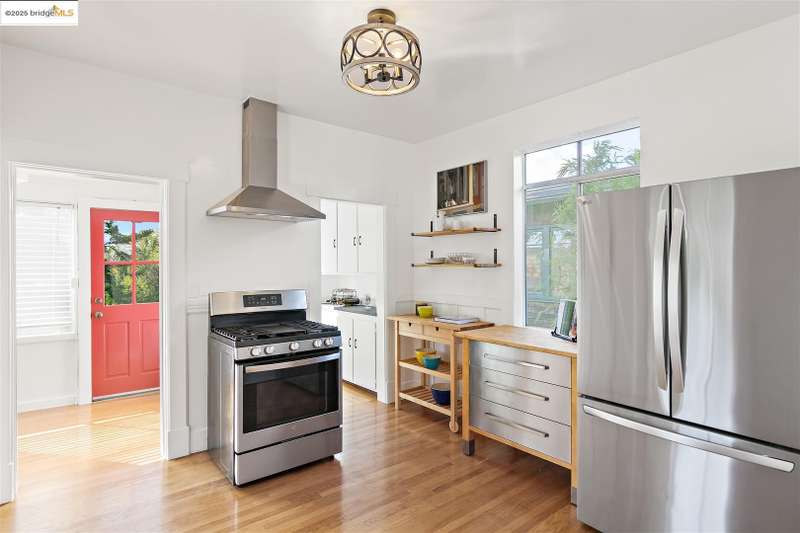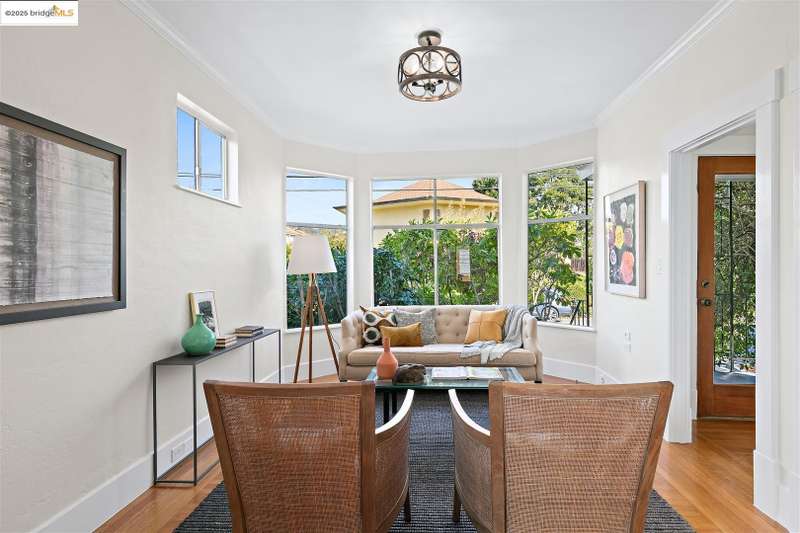 <strong>Charming Edwardian Home with Modern Studio* in the Heart of Westbrae</strong> Welcome to this delightful and well-maintained 2+ bedroom Edwardian-style home nestled in the vibrant Westbrae neighborhood. This classic home blends timeless architectural charm with thoughtful updates and versatile living spaces. A picturesque front porch framed by mature bougainvillea invites you into a light-filled interior featuring tall ceilings, rich hardwood floors, and expansive bay windows in the elegant living room. The formal entryway opens to a gracious, open-concept layout that seamlessly connects to the spacious dining room, featuring a wall of windows. The refreshed kitchen boasts stainless steel appliances, solid surface countertops, hardwood floors, and two bonus alcoves that offer excellent additional counter space and storage. The updated bathroom includes a newer vanity, sink, and modern tile work. Step outside to a fully fenced backyard featuring a mature lemon tree, patio, and grassy area for outdoor dining, gardening, or play. A detached modern bonus studio space* adds flexibility — complete with gorgeous wood flooring, wood-paneled ceiling, and its own beautifully tiled bathroom** with a walk-in shower. Whether you’re seeking a private office, creative retreat, or guest quarters, this space delivers. Additional highlights include: <dl><li>Large unfinished lower-level area with laundry and abundant storage</li> <li>Long driveway with ample off-street parking</li> <li>Fresh interior and exterior paint</li> <li>Prime location near Cedar Rose Park, Whole Foods, REI, Acme Bread, Gilman Brewing, and Tokyo Fish Market</li> <li>This inviting Westbrae gem combines character, convenience, and modern comforts — all in a welcoming neighborhood close to everything Berkeley has to offer.</li></dl> *Buyer to verify use of space. Neither seller nor listing agent has investigated or verified the accuracy of any of these sources of information nor that these spaces are or may be made into legally habitable spaces. Buyer must conduct their own investigation with the city and appropriate professionals and rely solely on that investigation. **Published Bed and Bath count differs from the public record. Buyer to investigate with the city. Neither seller nor listing agent has verified the accuracy of any of these sources of information.