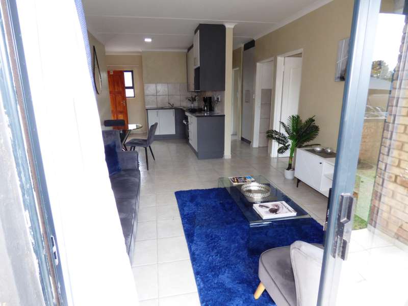 Contemporary, newly constructed sectional title apartments offer two bedrooms, accompanied by one stylishly designed bathroom. The fully tiled open plan lounge, dining room, and kitchen are adorned with elegant granite countertops. Ground floor units include a private enclosed garden, patio, and permit one pet. One carport and one visitors. Conveniently situated in the serene suburb of Cloverdene, Benoni, this development is within easy reach of shopping centers. The complex is equipped with fibre connectivity, prepaid electricity, and secured by 24-hour access control and electrified fencing. These highly sought-after units are selling rapidly, so don't miss out on securing the prime location during the launch offer! Enjoy a hassle-free process with no transfer or bond costs, and take advantage of our 100% bond option. Owning your own home is now more affordable than ever. These units are perfect for first-time buyers or a sound investment opportunity. Don't delay - enquire today and reserve your unit.
