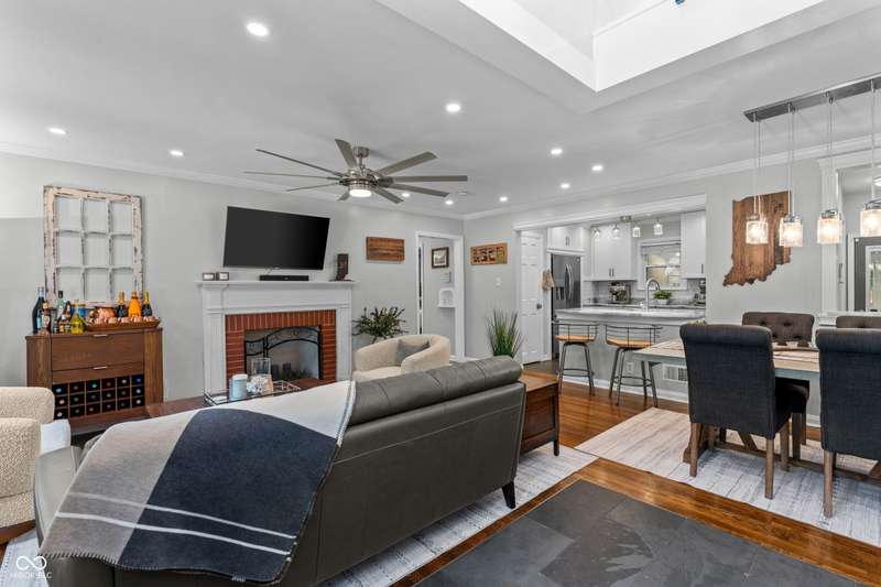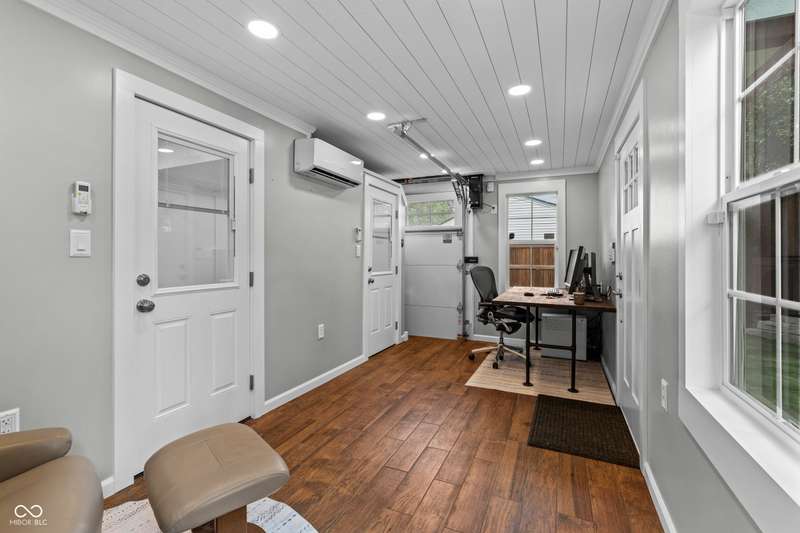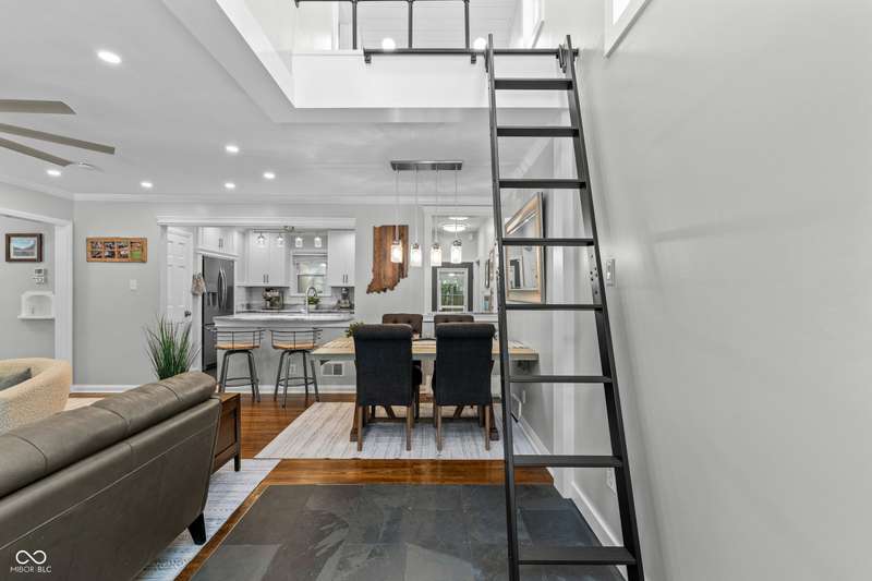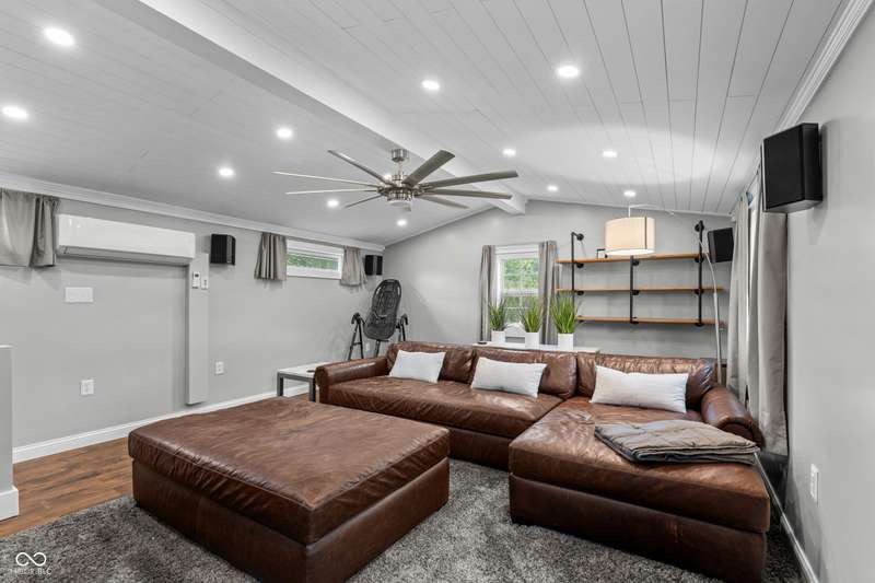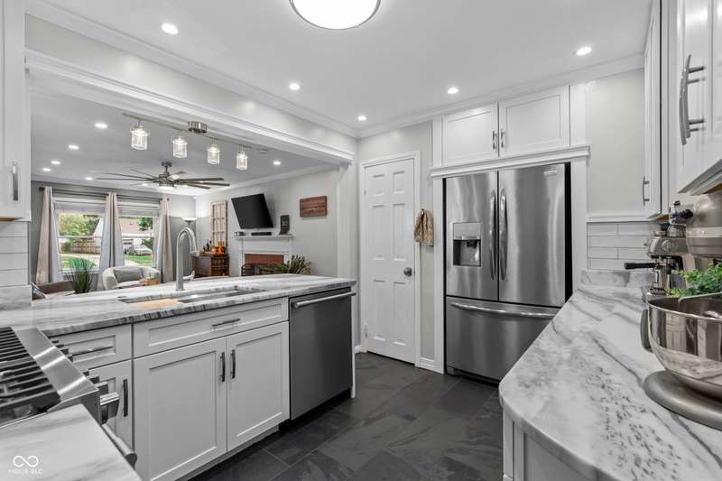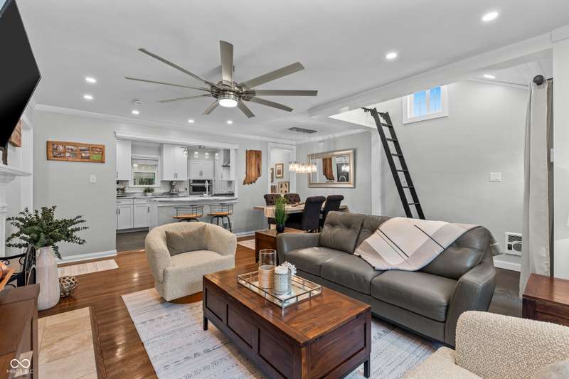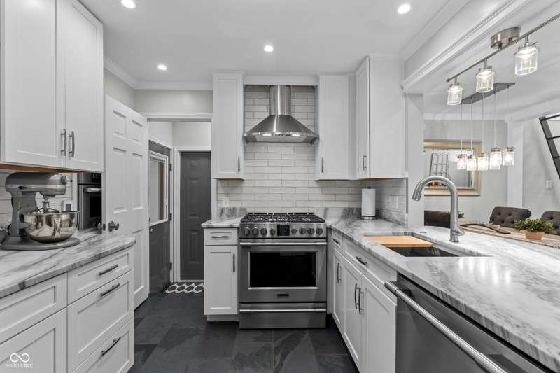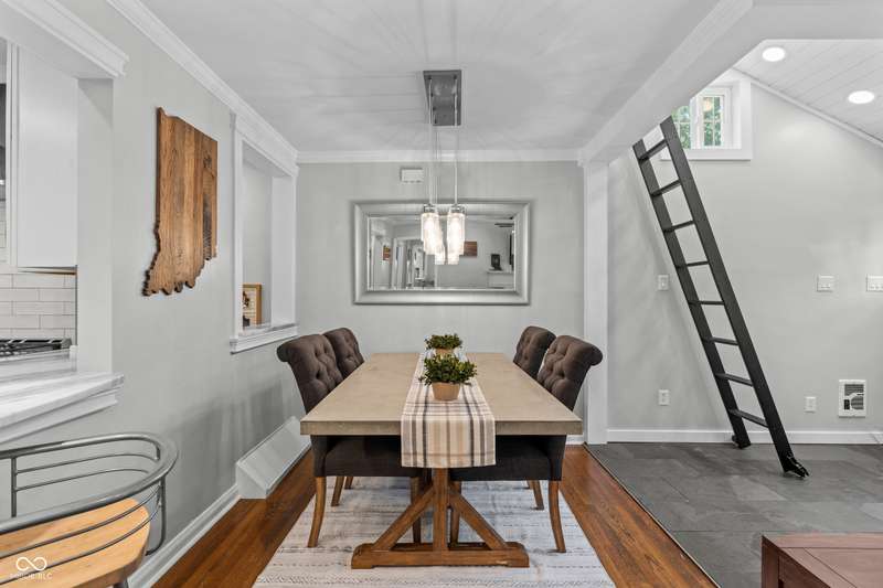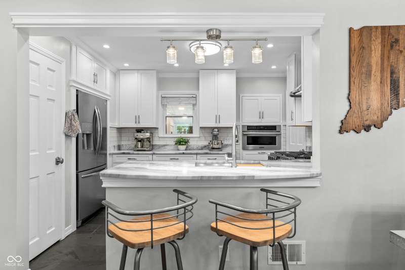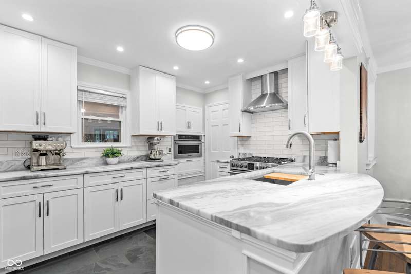 A Rare Broad Ripple Find! Opportunities like this don't come along often. This fully remodeled Broad Ripple bungalow is a true showpiece-blending timeless charm with luxurious, modern upgrades. Inside, you'll find gleaming hardwood floors, elegant crown molding, recessed lighting, and an attic transformed into a versatile loft retreat. The open dining/living room combo flows seamlessly into a chef's dream kitchen featuring marble countertops, soft-close cabinetry, stainless steel appliances, a gas range, pantry, custom tile backsplash, second convection oven/microwave, and even a heated floor. The primary bedroom boasts a custom closet, while the finished basement is a showstopper in itself-complete with a third bedroom (egress window), full bath, spacious laundry with built-in dog wash, and a family room with office and bar area. Clever storage is tucked under the stairs, maximizing every inch. Car enthusiasts will appreciate the garage's raised ceiling, designed to accommodate a car lift, while outdoor living rivals a private resort: hot tub, waterfall pond, fire feature, AstroTurf lawn, and multiple entertaining spaces. The heated/cooled outbuilding offers endless possibilities-home office, theater, studio, or even indoor dog runs. This is not just a home-it's a lifestyle upgrade in one of Indy's popular neighborhoods. Homes like this rarely hit the market-don't miss your chance.