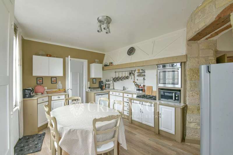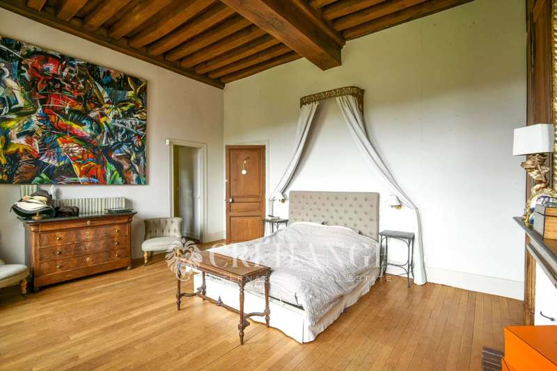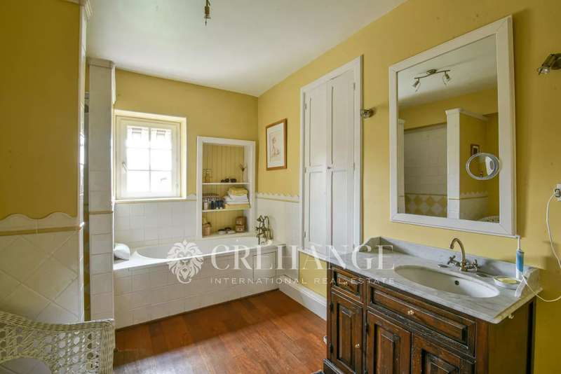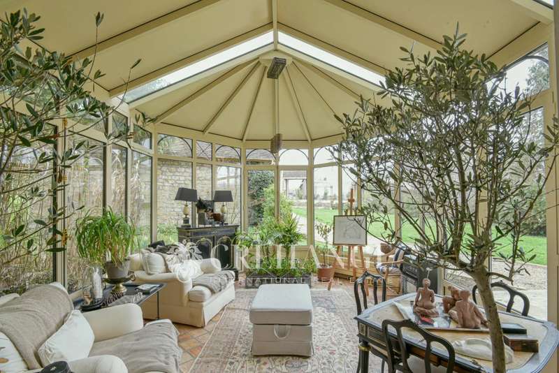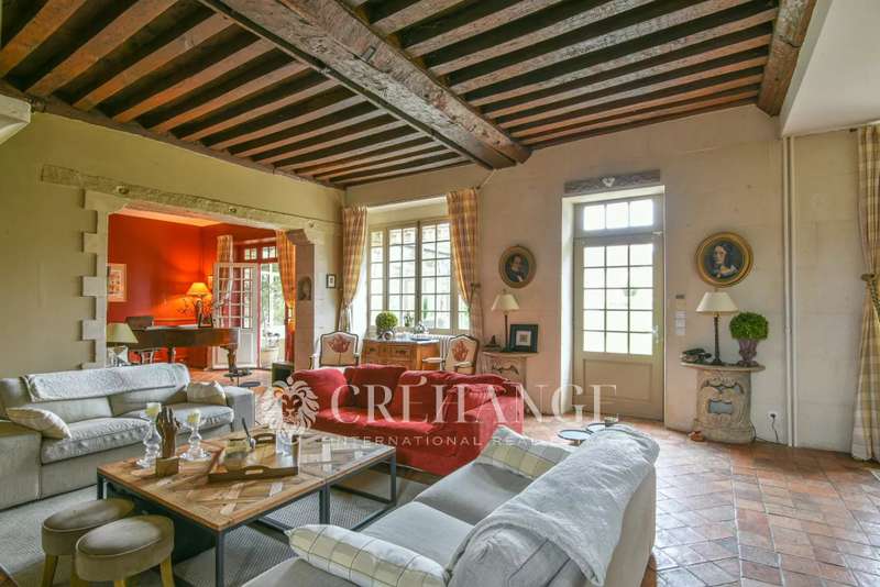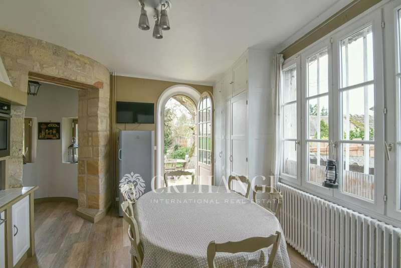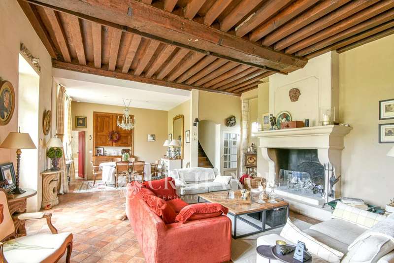 17th century manor with 267m² of living space (373m² total area), 10 rooms including 6 bedrooms, located on a plot of 4930m². Ground floor: entrance opening onto a triple living room - dining room, living room, lounge-library - with high ceilings of 3.50m, tiled floors, stone fireplace, ceiling with exposed beams, heated veranda, kitchen, linen room, toilet. 1st floor: 3 bedrooms each with its own bathroom or shower. Parquet floors, double-glazed windows with interior shutters, numerous cupboards. 2nd floor: 1 office or small bedroom overlooking the tower, 2 bedrooms, shower room, wc, attic. Basement: boiler room, wine cellar. Roof in old tiles maintained regularly. South-facing terrace overlooking the landscaped garden. In addition to the property, there is a guest house, and not overlooked by the manor, 2 other houses and a studio with tenants in place (lease available). Also, annex buildings including 2 carports, an outdoor swimming pool, an orchard, a chicken coop and 3 horse boxes. Charming property in the heart of the French Vexin Regional Park, 40 minutes from Paris. Station at 800m (Line J Direct for Saint-Lazare) and A.15 at 5km. Shops at 5km. Ableiges golf course 3km away. Pontoise and Cergy-Pontoise 15km away. Information on the risks to which this property is exposed is available on the Georisques website http://www.georisques.gouv.fr.