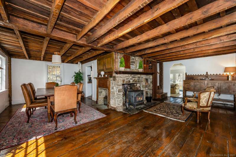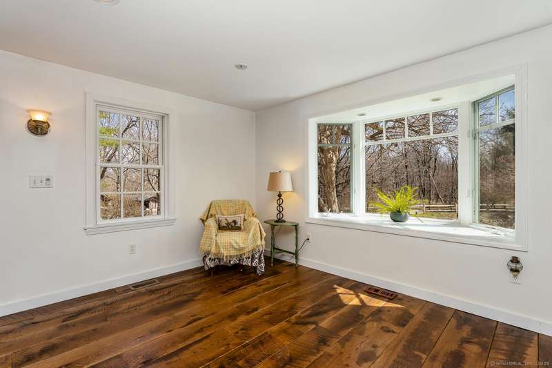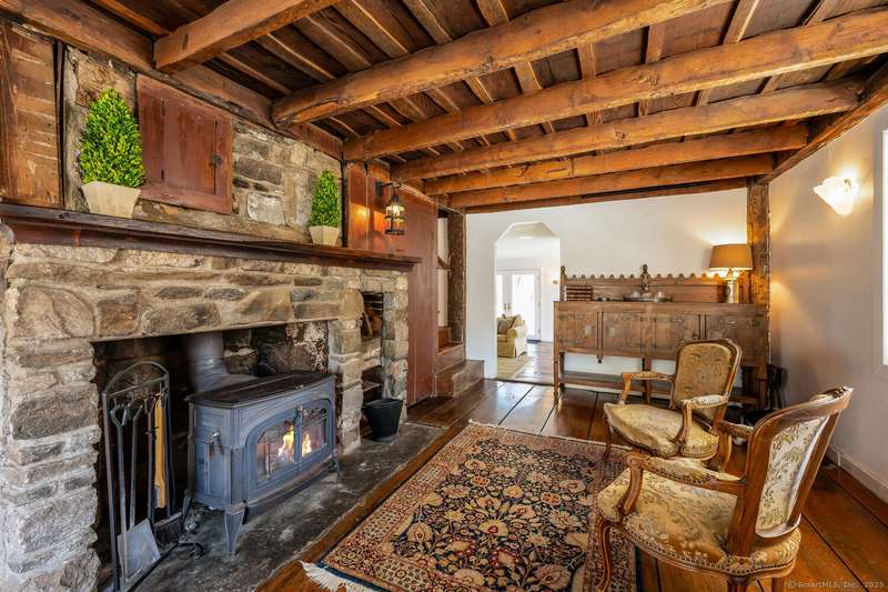 Step into the timeless charm of Rock House Woods, an enchanting 1800s farmhouse seamlessly blending historic character with modern conveniences, including GEOTHERMAL heating & cooling! A welcoming front porch invites you into this sun-drenched home, where wide-plank floors, exposed beams, large picture windows and a charming country kitchen creates an atmosphere of warmth, character and sophistication.The spacious family room, adorned with French doors, opens to a lovely flagstone patio-perfect for effortless indoor/outdoor entertaining. The newer primary suite impresses with vaulted ceilings, a grand Palladian window, and a luxurious en-suite bath. Two additional bedrooms and a full hall bathroom complete the second floor. The versatile third-floor space is ideal for a home office, playroom, or 4th bedroom. For equestrian enthusiasts, this picturesque Horse Property features a well-appointed barn with tack room, an additional three-stall stable, and two paddocks, offering the flexibil