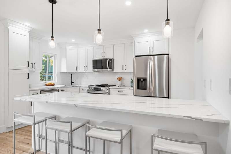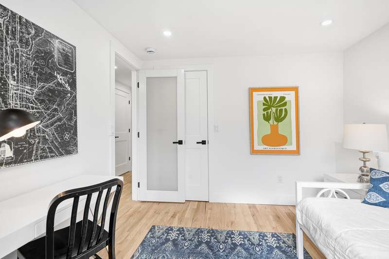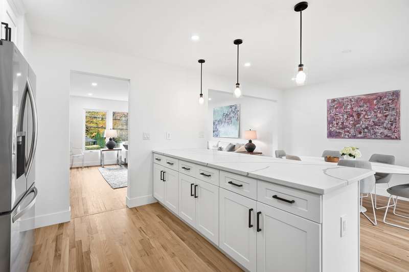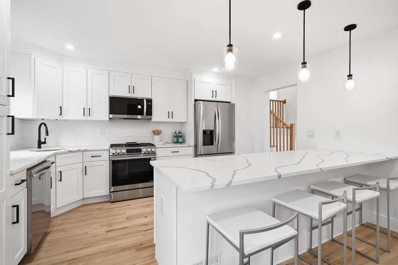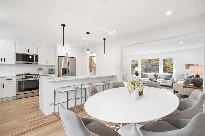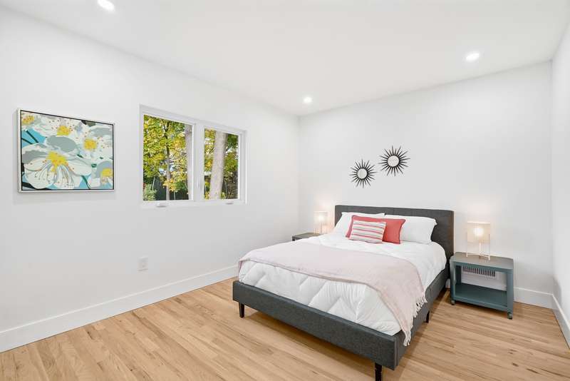 Perfectly positioned across from a scenic park and the iconic Larchmont Gazebo, this gut-renovated home captures the essence of modern luxury and walkable village living. It is just steps from Chatsworth Avenue School, the train station, and all the beloved shops and restaurants that define Larchmont Village. This home offers the ultimate in convenience and community connection. Step inside to discover sun-filled, beautifully scaled living spaces that blend classic character with fresh, contemporary style. The oversized living room flows effortlessly into a dining area designed for both elegant entertaining and everyday comfort. The kitchen impresses with brand new stainless steel appliances, refined finishes, and an expansive island with seating for four, the perfect gathering spot for family and friends. Large sliding glass doors open directly to a private patio and garden, ideal for weekend barbecues, childrens play, or simply soaking in the calm of a Larchmont afternoon. On the ground level, the primary suite offers a true retreat with a walk-in closet and a second closet as well as an ensuite bath, designed for comfort and sophistication. Just next door, a flexible bedroom serves beautifully as a guest room, nursery, or private home office. Upstairs, youll find two generously sized bedrooms, a den or game room, and a beautifully appointed full bath, the perfect balance of style and functionality for modern living. Every element has been meticulously curated, from the refinished natural oak hardwood floors to the tailored millwork and timeless designer tile. Completely reimagined for todays lifestyle, the home features all-new systems, including modern HVAC, energy-efficient windows, and upgraded electrical and plumbing, ensuring peace of mind for years to come. Welcome home to the very best of Larchmont Village life.
