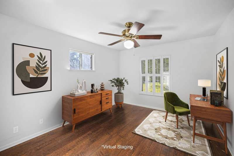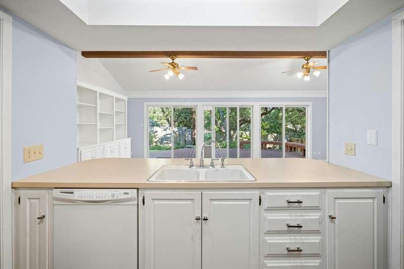 7110 Sungate Drive is a charming single-story home in the coveted Northwest Hills neighborhood, offering four spacious bedrooms plus an office, perfect for those seeking a peaceful retreat on a charming street. The home is filled with potential for a modern remodel, allowing you to reimagine the interiors to suit your style and needs. The living room and kitchen serve as the heart of the home, featuring vaulted ceilings, a cozy fireplace, and sliding doors that open to a shaded deck and a private, fenced-in backyard—ideal for indoor-outdoor living.