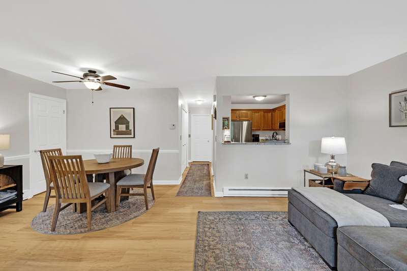 GORGEOUS END UNIT! Updated & well maintained, this two bedroom ranch in desirable Willow Springs is exquisite! ALL the capital improvements have been made...NEW NEW NEW! Spacious living & dining room, designer grade laminate flooring with a classic wood look throughout. NEW electric fireplace focal point mantle features soothing colors & warmth! Fantastic kitchen with newer appliances, plenty of polished cabinetry, pantry & breakfast bar. You will enjoy cooking in this space, styled with natural fantasy brown countertops & farmhouse faucet, so chic! Primary bedroom boasts a huge closet & is spacious enough for a king bed furniture plus motorized window shades! The sparkling, renovated bathroom is light, bright with walk-in shower, new fixtures & SO fresh all around. Laundry room includes washer & dryer. Your outdoor backyard with dual patio is perfect for your electric BBQ, seating & umbrella. A traditional feel combined with modern updates, this condo is sure to please you... Lovely W