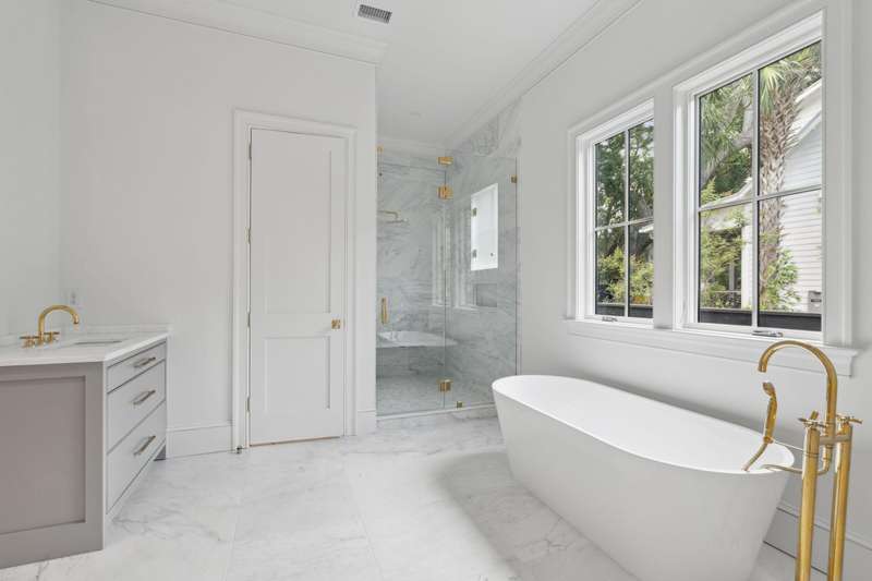 Exciting, new construction of this Amber Aument designed home in Old Mt. Pleasant. This is another custom build by Peter Malanos of Arcadia Construction. Located within minutes of Sullivan's Island and Downtown Charleston, this home is just a walk, bike ride or golf cart away from the Pitt Street bridge, Alhambra Hall, ''downtown'' Old Mt. Pleasant Village and outstanding schools (MP Academy and Moultrie Middle). In addition, Post House and other fine restaurants are nearby. The home is located on a quiet cul-de-sac nestled among beautiful oak trees. Every detail of this high-end 4 bedroom, 4 1/2 bath home has been considered from floor plan to finishing details. First floor includes the primary bedroom suite with walk-in closet, cypress lined study with vaulted ceiling and fireplace,living/dining room with fireplace, gourmet kitchen with eat-in space, kitchen office, walk-in food pantry and separate laundry room all with custom cabinets. Butler's pantry features sink, under counter wine cooler and ice maker. Kitchen features include a 48" dual fuel Wolf range with 6 burners, griddle and 2 ovens, a 36" built-in SubZero refrigerator. On the second floor, there are 3 bedrooms with private full baths, plus an additional flex living space (media, play, bunkbeds or....). Exterior spaces include rear porch with exposed rafter vaulted ceiling and wood burning/gas fireplace overlooking in-ground pool. At poolside, there is an IPE deck adjacent to a 240 sf finished, temperature-controlled poolside accessory building with a half bath and outdoor shower stall. Extensive landscaping with automatic irrigation system and landscape lighting. High impact windows.
