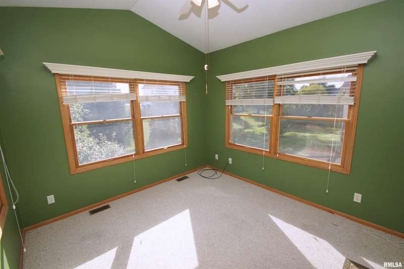 Davenport Iowa Real Estate for Sale! This Ranch Villa features Soaring Cathedral Ceilings, Oak Hardwood Flooring, Open Floor Plan with Pass-Through from Convenient Kitchen with Pantry and Large Eating Area, Sunny Southern Exposure Sunroom, Gorgeous Gas-Log Fireplace, Large Walk-Through Closet from Master Bedroom Suite with Whirlpool Tub & Double Sinks, Finished Basement with Rec Room, 3rd Bathroom, Family Room, Office, & 3rd Full Bathroom, Hidden Storage Room, & Walk-Out to Patio! New Furnace & Central AC - 2022! All Villas have Dusk-to-Dawn Yard Lights to create a Safe and Welcoming Environment.