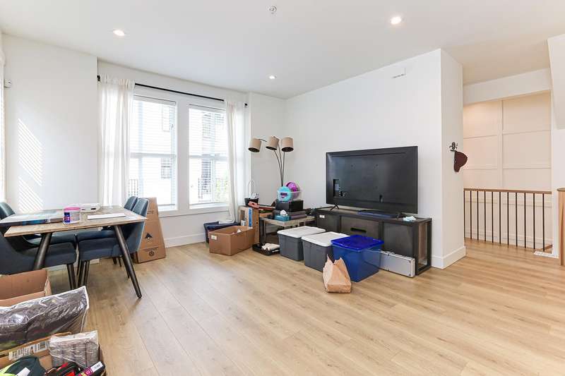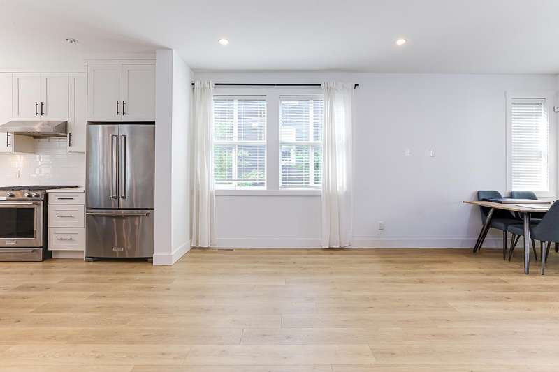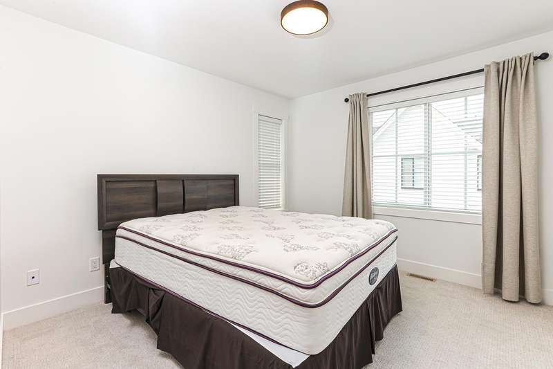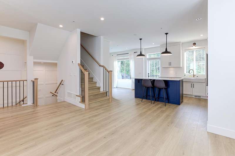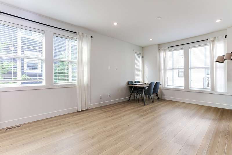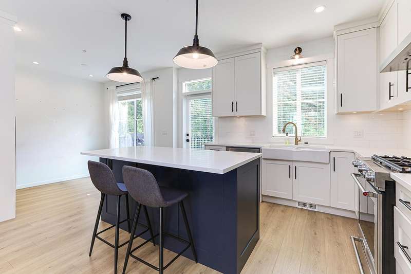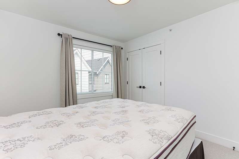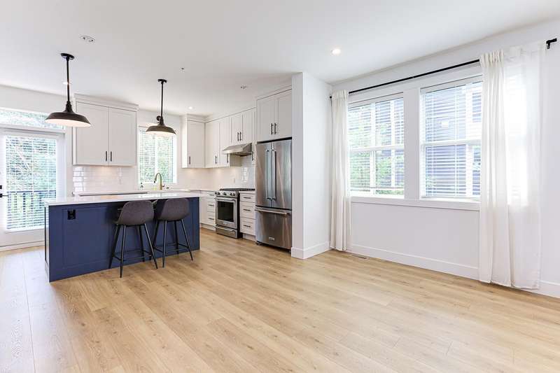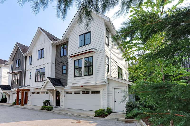 Welcome to HOMESTEAD-this 2021-built 3-storey townhome offers 1,792 SF of elegant living with 4 beds/4 baths, and a side-by-side double car garage. Corner unit! Enjoy luxury finishings including intricately designed feature walls with crown-style detailing, vaulted ceilings in the primary bedroom, and spa-inspired bathrooms. The open-concept main floor features KitchenAid S/S appliances and A/C for year-round comfort. Step out to a spacious, fully fenced backyard backing onto a tranquil greenbelt-perfect for privacy and entertaining. Bedroom with full bath on below level is ideal for guests or office. A rare blend of style, space, and serenity! Walking dist. to parks, trails, schools, transit, & mins to Hwy 1. Low strata fees and pet-friendly. Contact Elton for viewing. (id:58403)