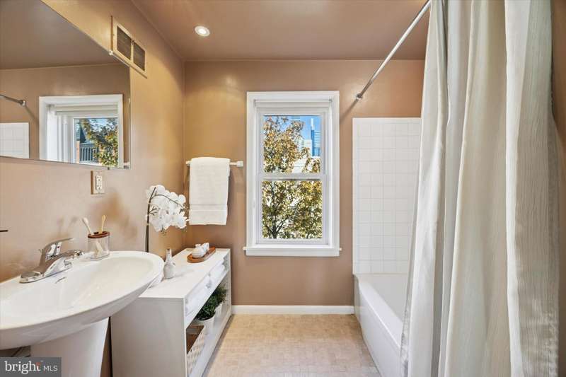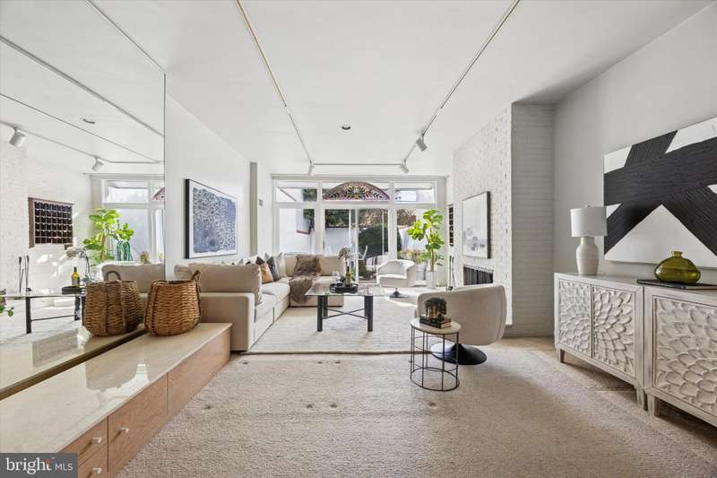 Welcome to 1934 Lombard Street- rarely available in Rittenhouse Square. This lovingly maintained home radiates mid-century charm and prestigious sustainability. Step inside to find a bright, open scape living and dining area that flows seamlessly to a generous walled in back patio. Floor to ceiling windows and a beautiful stained-glass detail, allows Southern sunlight to pour into the main floor space. A wood fireplace enhances the room. The kitchen offers plenty of potential for your own modern updates or creative redesign. Upstairs, you'll find two spacious bedrooms and a full bath. The front bedroom features impressive wall-to-wall built-in wood cabinetry. The large rear bedroom has full wardrobe closets on both sides to the entry to the bath. Large double windows provide natural light for this room. The third floor is your personal retreat, a full-floor primary suite complete with a wood burning fireplace, en suite bath, and an enclosed secluded patio deck perfect for your morning coffee or evening relaxation. This home offers a rare opportunity to live in one of Philadelphia's most desirable neighborhoods with just steps from the Lombard Swim Club, Rittenhouse Square, Fitler Square, Schuylkill River Park, and endless restaurants and shops. This home is incredibly walkable, close to public transit, public parks, and anything you need for comfortable city living. Make your appointment to view it today.