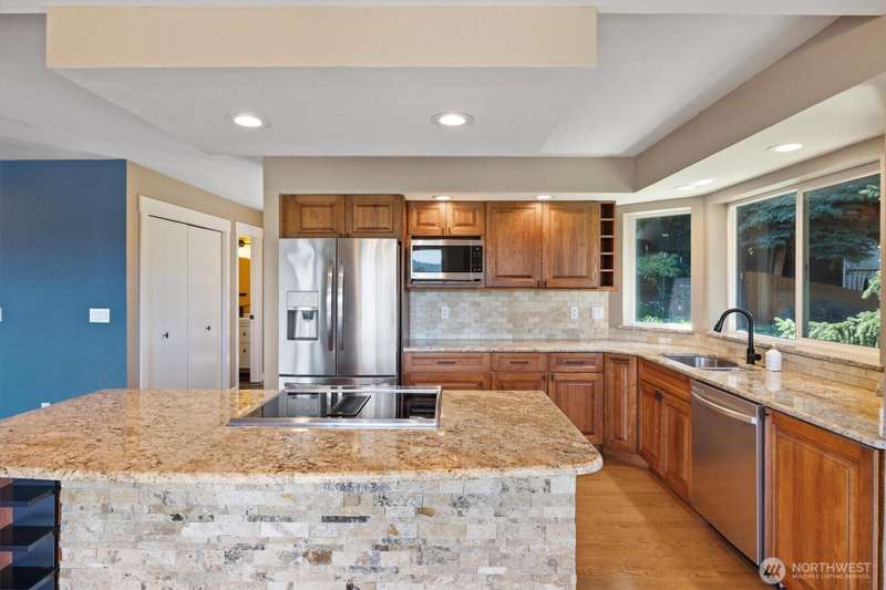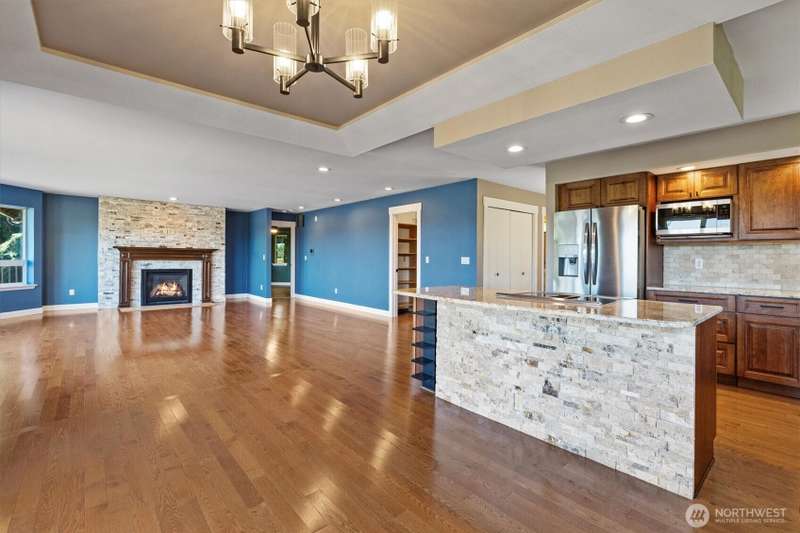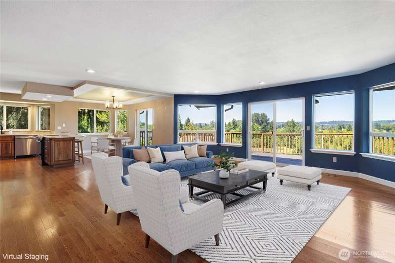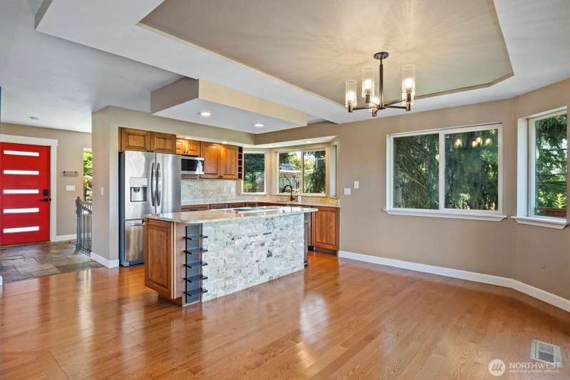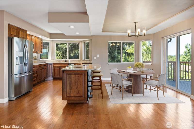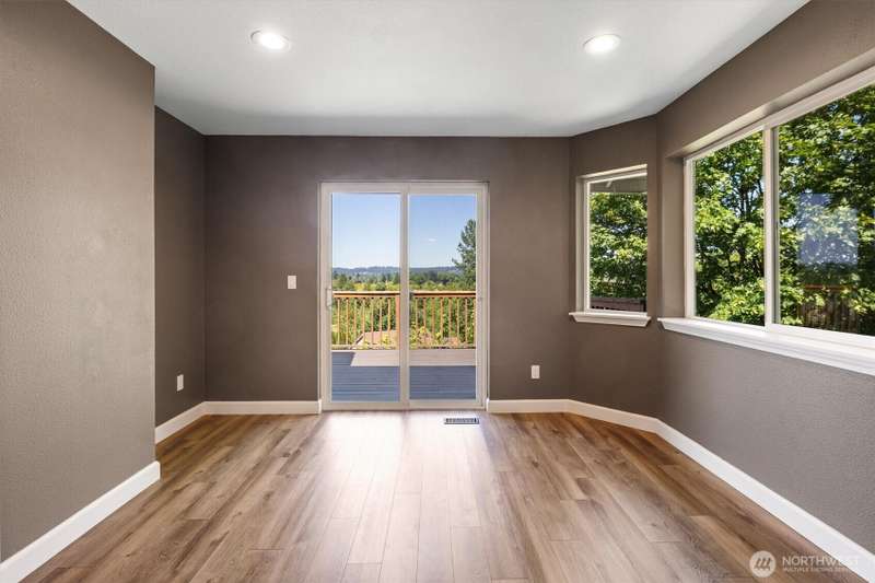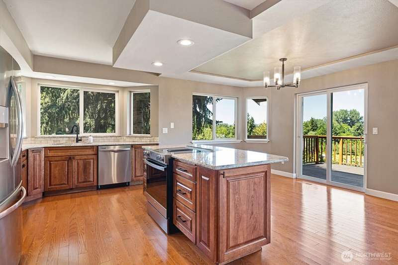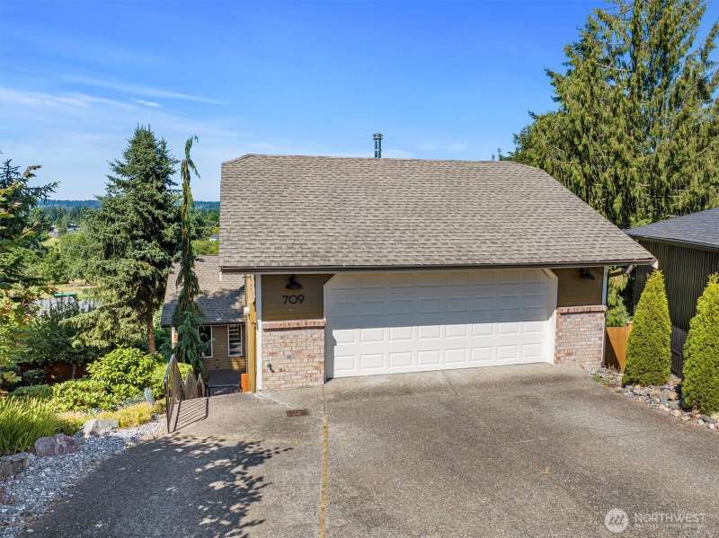 Perched above the Puyallup Valley with stunning Cascade views, this beautifully updated 4-bed, 2.5-bath home blends comfort and elegance. Sip morning coffee on the expansive deck and relax in the private courtyard surrounded by mature landscaping. Inside, the gourmet kitchen features granite counters, premium appliances, and flows into bright, open living areas. Stay comfortable year-round with A/C and two gas fireplaces. Key upgrades include a 50-year roof (2010), plus exterior paint and gutters (2020), updated bathrooms, and a refreshed deck. Multi-level garage offers great storage or workspace. Ideal location near parks, trails, shops, and schools.