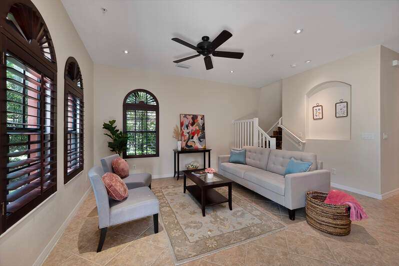 Indulge in the epitome of Mediterranean living within the vibrant Ole community of Lely Resort. This immaculate, two-story home presents a rare opportunity to own a slice of paradise. Experience and be captivated by the Santa Ana open concept floor plan, an entertainer's dream. The gourmet kitchen, a culinary masterpiece, boasts stainless steel appliances, a walk-in pantry, a breakfast bar, flowing seamlessly into the family-dining area. As a coveted end-unit nestled within the courtyard, this residence offers unparalleled tranquility and privacy. Luxury abounds with tile and engineered wood flooring, plantation shutters, an abundance of storage solutions thoughtfully placed throughout, 3 spacious bedrooms upstairs and a dedicated office area for those who desire a productive work-from-home environment. Beyond your doorstep lies the heart of the Ole community - a sprawling 20,000-square-foot village center. Immerse yourself in resort-style living with a sparkling pool, a dedicated children's pool, a soothing spa, a convivial pub, an ice cream counter for sweet treats, a gourmet bistro, a state-of-the-art fitness center, a private theater, and tennis and pickleball courts. Ole is a premier neighborhood strategically positioned near world-class shopping, delectable restaurants, the charming historic Downtown Olde Naples, Marco Island. Our pristine white-sand beaches are moments away, promising a lifestyle of sun-kissed elegance and coastal bliss. ALL CURRENT ASSESTMENTS PAID BY THE SELLER FOR SMOOTH TRANSITION!