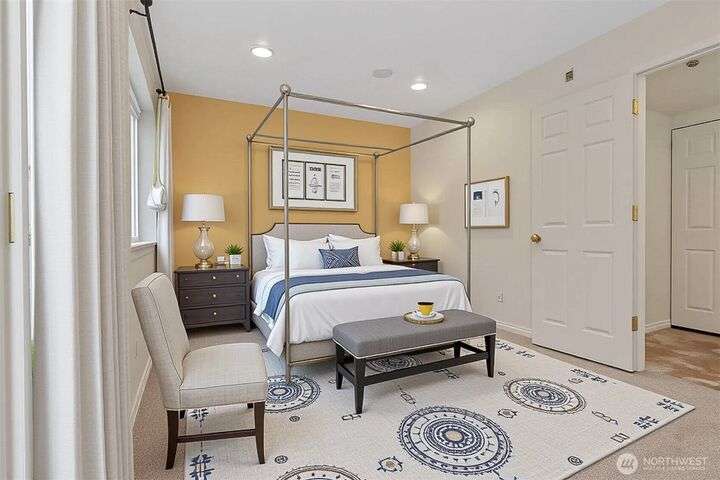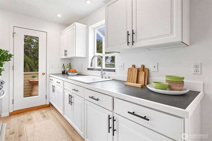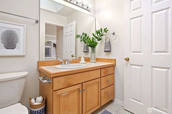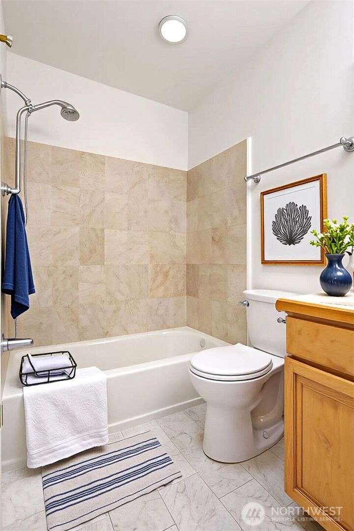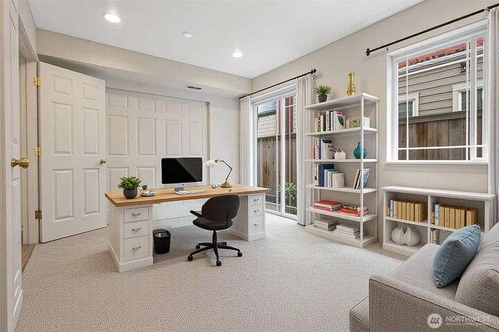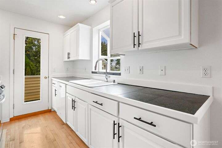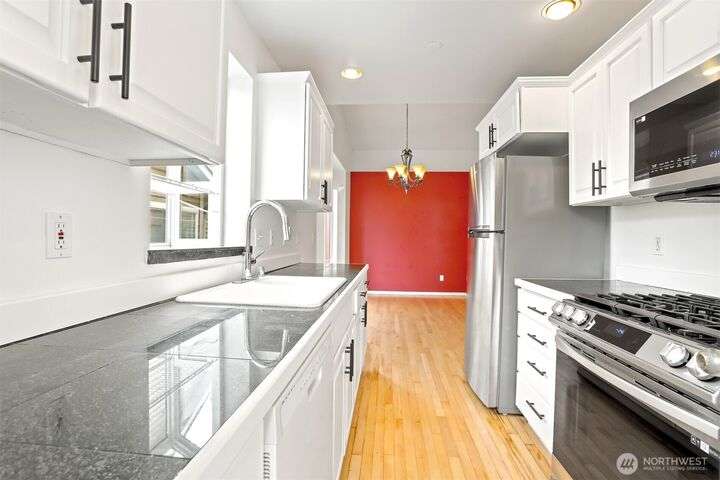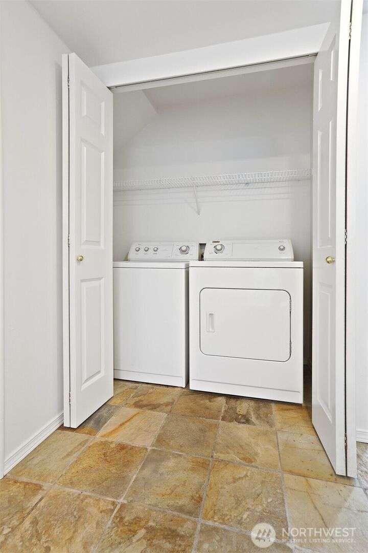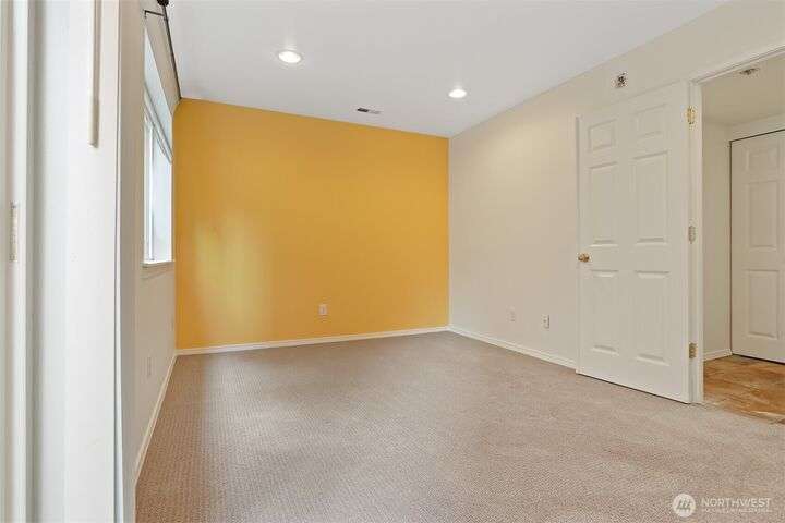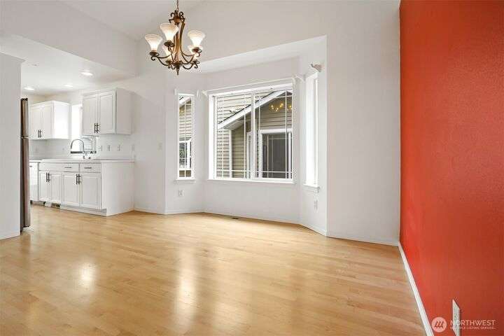 Light-filled, move-in ready townhouse style condo in a quiet community on a dead-end street! The lower level offers a spacious bedroom w/ glass sliders that open to a small yard & patio, a full bathroom & washer/dryer. The upper-level boasts refinished hardwood floors, bay windows, a gas fireplace, dining room, & spacious kitchen w/ gas cooking, & balcony for BBQs. The primary suite includes a walk-in closet & a full bath w/ skylight. Fresh paint throughout, new carpet, new H2O heater, newer furnace & kitchen appliances, 2-car garage w/ additional storage. Low HOA dues & great Shoreline schools. Steps to Interurban Trail. Very close to shops & tons of dining options. Incredibly convenient to 99 & I-5, & the new 148th light rail station.