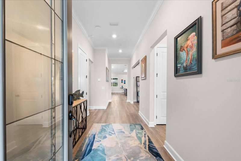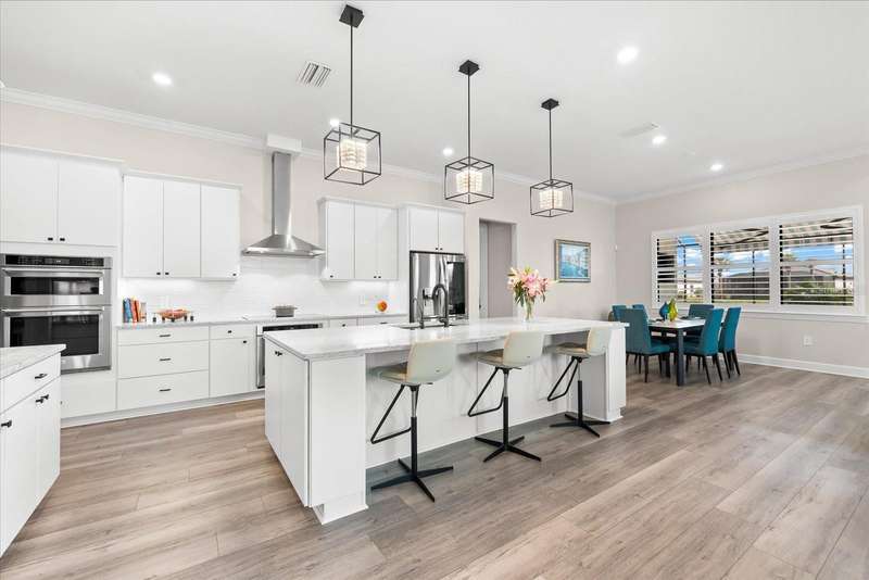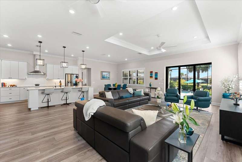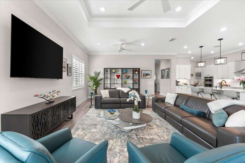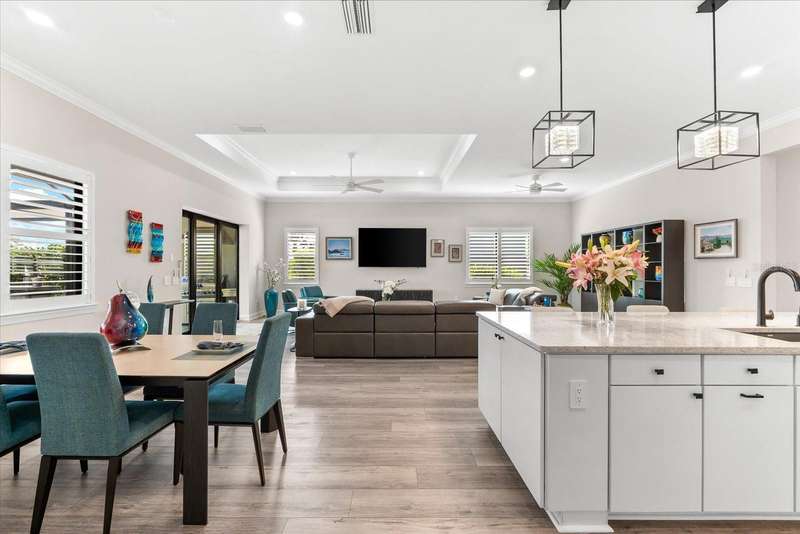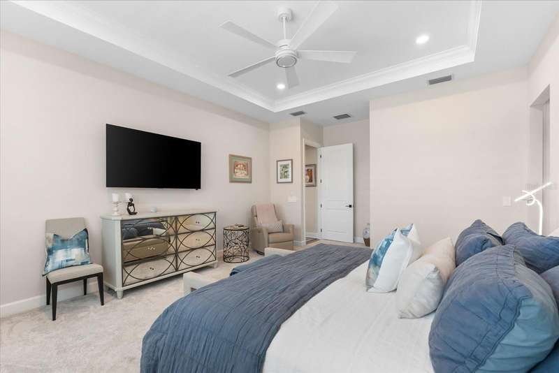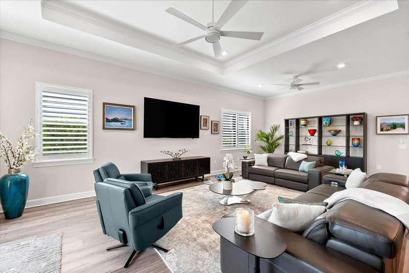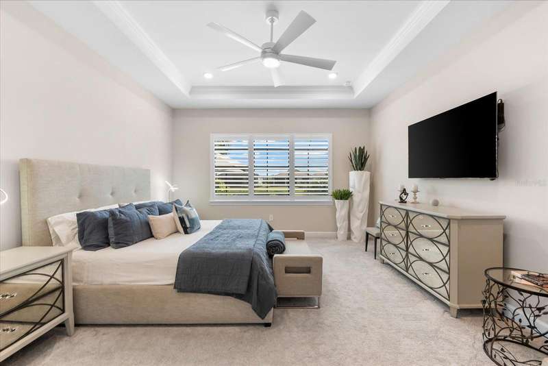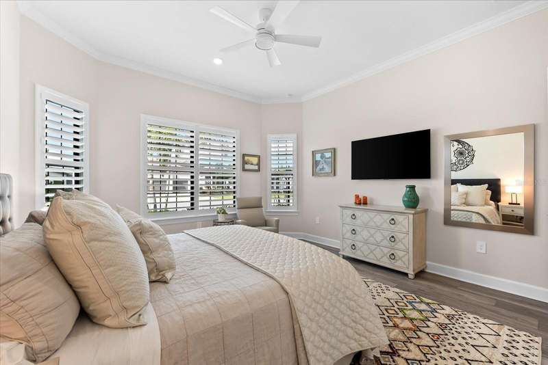 WHOLE HOUSE GENERATOR* IMPACT DOORS AND WINDOWS* PRICED TO SELL*Modern Comfort Meets Resort-Style Living in Del Webb Lakewood Ranch. Welcome to easy, elegant living in the heart of Del Webb Lakewood Ranch—one of the area's most desirable 55+ communities. Set on a premium south-facing waterfront lot, this beautifully upgraded Renown floor plan offers everything you need for comfort, style, and low-maintenance Florida living. Step inside to discover an open, airy layout with 3 spacious bedrooms, 3.5 bathrooms, and a flexible bonus room—perfect for a home office, hobby space, or additional living area. Thoughtful upgrades shine throughout the home, from tray ceilings and crown molding to plantation shutters and impact-resistant windows and doors. The gourmet kitchen is a standout feature, complete with Bosch induction cooktop, built-in double ovens, stainless steel range hood, 2-zone wine fridge, wine rack, reverse osmosis system, touchless faucet, custom cabinetry, and a perfectly organized walk-in pantry. The oversized island is the heart of the home—ideal for casual dining, entertaining, or prepping meals in style. The owner’s suite is your personal retreat, featuring a luxurious bath with dual vanities, an oversized walk-in shower, private water closet, and two custom walk-in closets. Two additional guest suites, each with their own private bath and walk-in closet, offer comfort and privacy for visitors. Enjoy peace of mind with a whole-house 24kW generator, water softener system, and an extended 3-car garage with built-in storage and epoxy floors. A separate powder room, drop zone, and large laundry room add to the home’s smart and functional design. Love the outdoors? You’ll appreciate the custom-designed heated saltwater pool and spa, extended brick-paver lanai, automatic sunshades, awning, and panoramic water views—perfect for relaxing or entertaining year-round. Large pocket sliding doors open wide to blend indoor and outdoor living effortlessly. Living in Del Webb Lakewood Ranch means more than just a beautiful home—it’s a lifestyle. Enjoy access to top-tier amenities including 6 tennis courts, 8 pickleball courts, bocce ball, a fitness center with group classes, a resort-style and lap pool, on-site restaurant and bar, and endless social opportunities organized by a full-time Lifestyle Director. With close proximity to Gulf Coast beaches, airports, shopping, dining, and culture, this home truly has it all. Move-in ready and meticulously maintained—don’t miss the opportunity to make it yours.