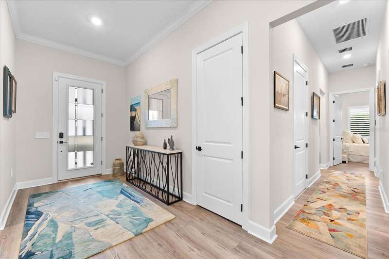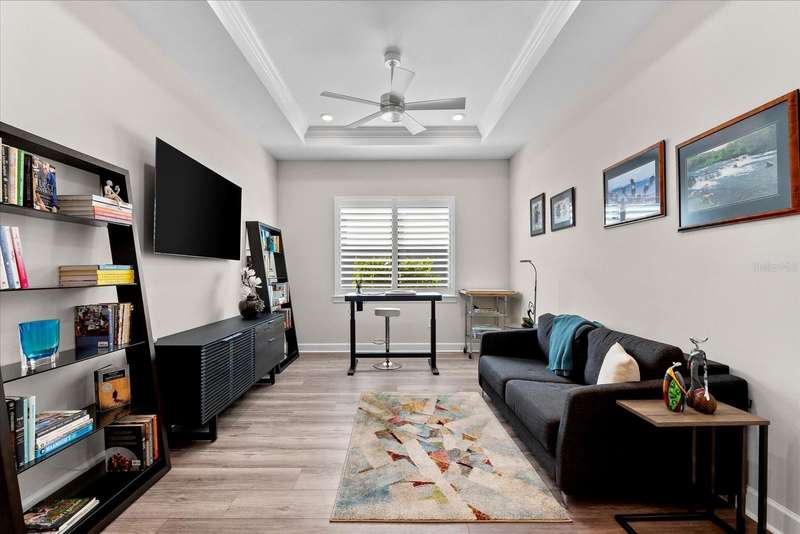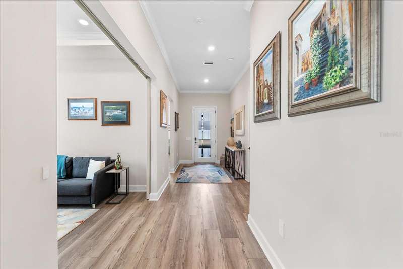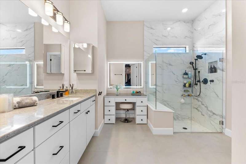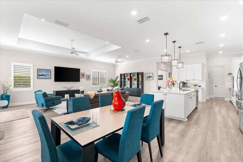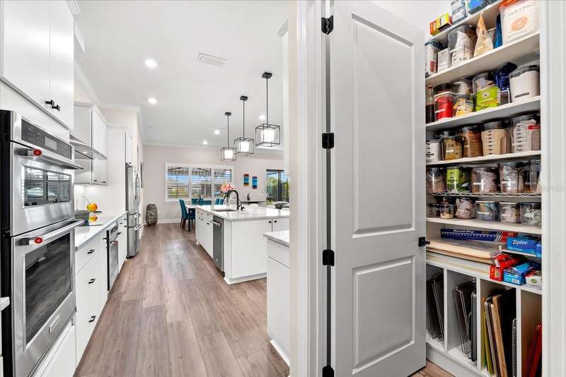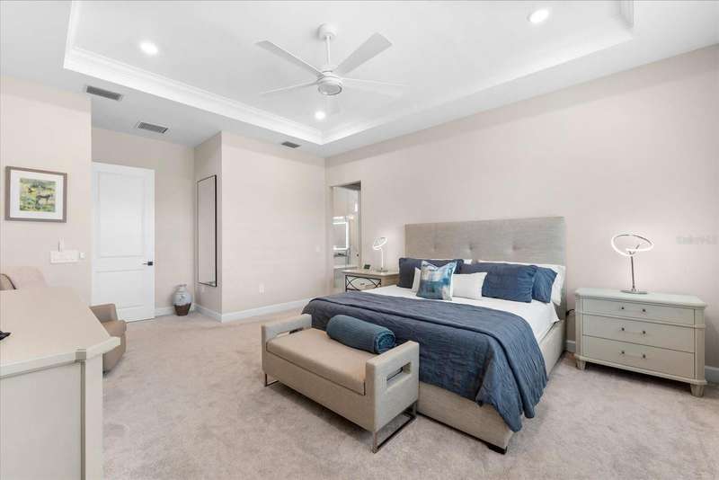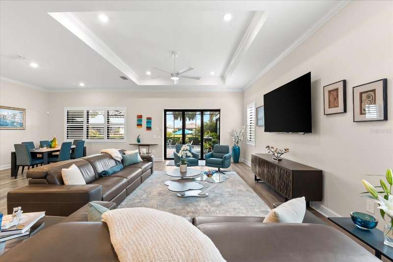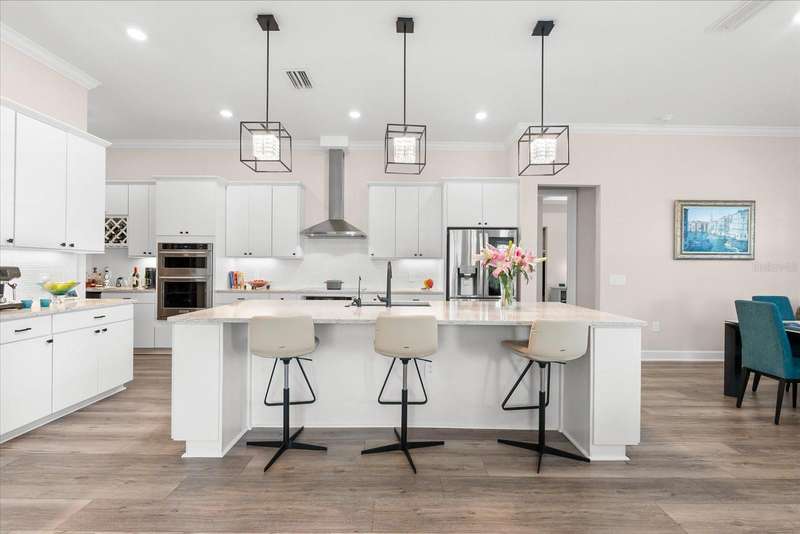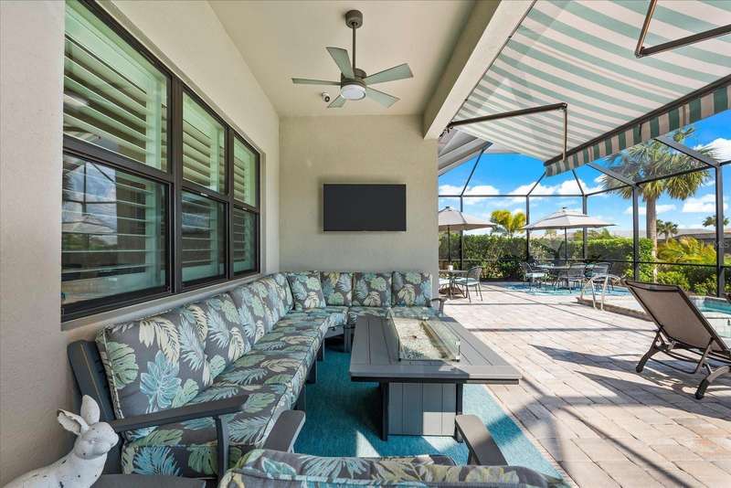 WHOLE HOUSE GENERATOR* IMPACT DOORS AND WINDOWS* PRICED TO SELL*Modern Comfort Meets Resort-Style Living in Del Webb Lakewood Ranch. Welcome to easy, elegant living in the heart of Del Webb Lakewood Ranch—one of the area's most desirable 55+ communities. Set on a premium south-facing waterfront lot, this beautifully upgraded Renown floor plan offers everything you need for comfort, style, and low-maintenance Florida living. Step inside to discover an open, airy layout with 3 spacious bedrooms, 3.5 bathrooms, and a flexible bonus room—perfect for a home office, hobby space, or additional living area. Thoughtful upgrades shine throughout the home, from tray ceilings and crown molding to plantation shutters and impact-resistant windows and doors. The gourmet kitchen is a standout feature, complete with Bosch induction cooktop, built-in double ovens, stainless steel range hood, 2-zone wine fridge, wine rack, reverse osmosis system, touchless faucet, custom cabinetry, and a perfectly organized walk-in pantry. The oversized island is the heart of the home—ideal for casual dining, entertaining, or prepping meals in style. The owner’s suite is your personal retreat, featuring a luxurious bath with dual vanities, an oversized walk-in shower, private water closet, and two custom walk-in closets. Two additional guest suites, each with their own private bath and walk-in closet, offer comfort and privacy for visitors. Enjoy peace of mind with a whole-house 24kW generator, water softener system, and an extended 3-car garage with built-in storage and epoxy floors. A separate powder room, drop zone, and large laundry room add to the home’s smart and functional design. Love the outdoors? You’ll appreciate the custom-designed heated saltwater pool and spa, extended brick-paver lanai, automatic sunshades, awning, and panoramic water views—perfect for relaxing or entertaining year-round. Large pocket sliding doors open wide to blend indoor and outdoor living effortlessly. Living in Del Webb Lakewood Ranch means more than just a beautiful home—it’s a lifestyle. Enjoy access to top-tier amenities including 6 tennis courts, 8 pickleball courts, bocce ball, a fitness center with group classes, a resort-style and lap pool, on-site restaurant and bar, and endless social opportunities organized by a full-time Lifestyle Director. With close proximity to Gulf Coast beaches, airports, shopping, dining, and culture, this home truly has it all. Move-in ready and meticulously maintained—don’t miss the opportunity to make it yours.