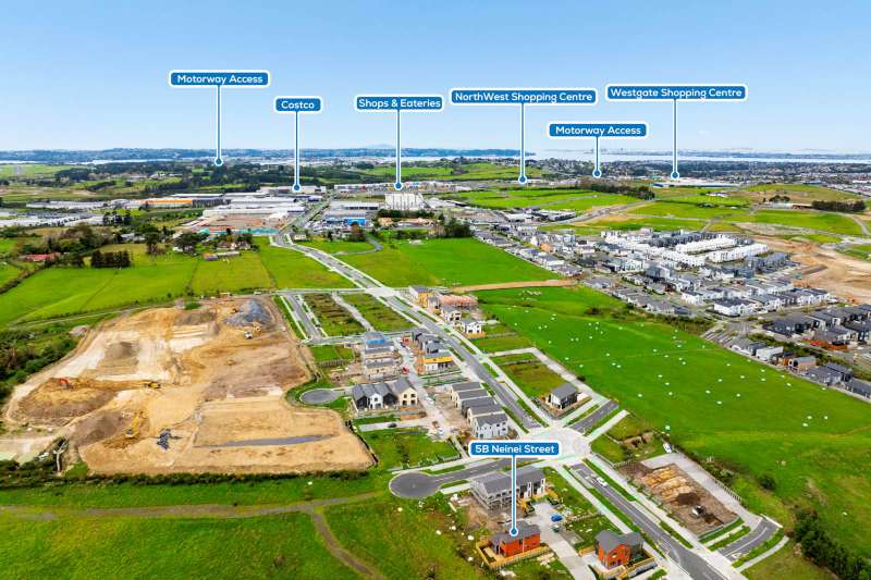 Google Map Henwood Road, Westgate and drive to the end of the road to find Neinei Street. Welcome to 5b Neinei Street, a beautifully designed free-standing home located in the brand-new subdivision of Westgate, where modern living meets unbeatable convenience. This solid two-level home, constructed with durable brick and weatherboard, offers four spacious bedrooms, three contemporary bathrooms, and a single internal access garage. A standout feature is the convenient downstairs bedroom, perfect for extended family, guests, or a home office setup. The ground floor includes a full bathroom and internal access garage, providing flexibility for multi-generational living or work-from-home comfort. Soaring 2.7-metre ceilings create a sense of openness throughout the main level, while the stylish open-plan kitchen - with stone benchtops and quality appliances - flows effortlessly into the light-filled living and dining area. Large sliding doors connect the indoor space to a private, easy-care backyard - ideal for entertaining or relaxing. Upstairs, you'll find three generously sized bedrooms and two beautifully appointed bathrooms, including a master suite complete with its own ensuite and ample wardrobe space. Situated just minutes from the modern amenities of Westgate and Northwest shopping centres, local schools, parks, and motorway access, this home offers both comfort and convenience in one of West Auckland’s fastest-growing communities. 5b Neinei Street is a brand-new, freehold property that’s turnkey ready and ideal for families seeking flexibility, space, and style. Contact us today to arrange your private viewing or for more information.