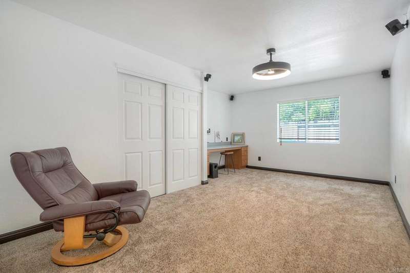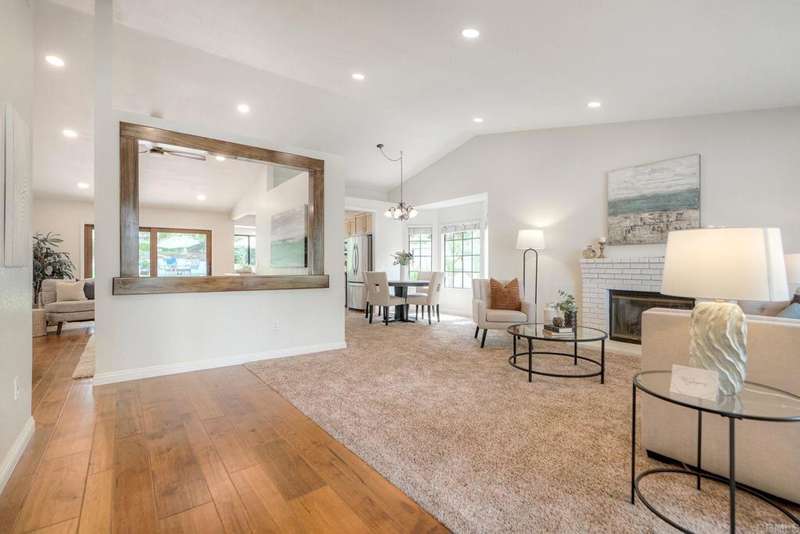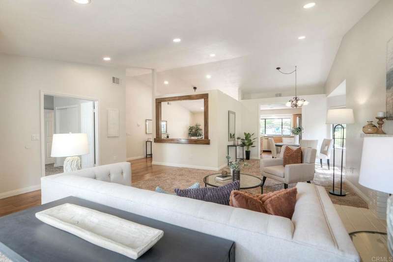 BEAUTIFUL SINGLE-STORY HOME IN JEFFRIES RANCH offering 4 bedrooms, 2 baths with a 3 car garage--all on a SPACIOUS 0.55 acre lot! Welcome to this meticulously maintained home....as you enter, you're greeted by a bright and airy open-concept living & dining area, featuring soaring ceilings, elegant hardwood floors, and windows that bathe the space in natural light. A cozy brick fireplace anchors the living room, creating the perfect setting to relax or entertain. The updated kitchen boasts custom Alder cabinetry, quartz countertops, a breakfast bar, filtered water and stainless steel appliances. Additional features include a new tankless WH, AC, whole-house fan, newer roof (2020), canned lighting & a Moen Flo Smart Water Monitor. The primary suite is a true retreat, complete with backyard access, a dual-sink vanity, spacious walk-in closet, and serene views of the garden. Step outside from the family room through a custom Anderson slider to a beautifully landscaped backyard oasis with mature trees, two patios, a fire pit, a 12x16 shed with electricity, and there's even a basketball court! There is PLENTY of room for your equestrian needs, RV, boat & toy parking, a pool or an ADU! There is a gate at the back of the property making access from the alley a true convenience! Fully fenced & irrigated. The garage has been nicely finished off with drywall & the third bay is separated by a wall--perfect for a work out area, office, play space or use your imagination! Only 7 miles to the Oceanside Harbor & the downtown area offering shopping, dining, coffee shops, breweries, boating, and near top-rated schools. A perfect blend of country charm & a family friendly neighborhood!