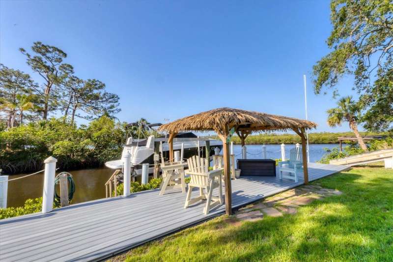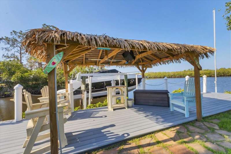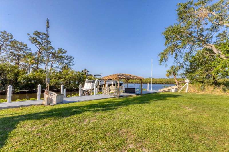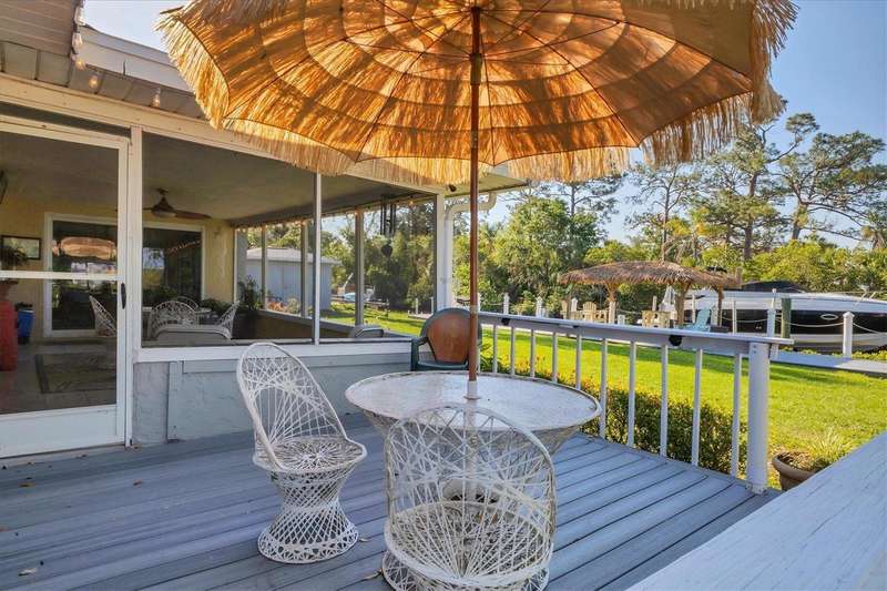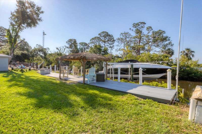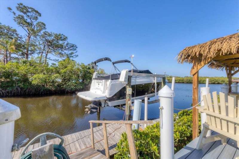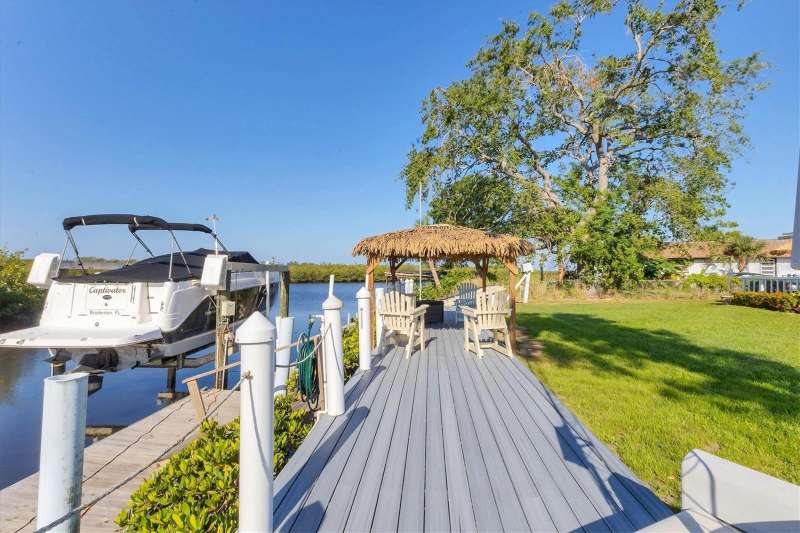 Boaters and water-lovers — this one’s for you! Welcome to your waterfront retreat on the beautiful Braden River! This charming 3-bedroom, 2-bath home is ideally positioned near the end of a quiet cul-de-sac with no HOA or CDD fees — offering privacy and freedom. A brand-new roof (2023) covers both the main house and the 10x10 detached workshop, perfect for hobbies, storage, or extra space. You’ll also enjoy peace of mind with clear polycarbonate hurricane shutters and the reassurance that this home has never experienced hurricane or flooding damage. Inside, the home boasts a desirable split-bedroom floor plan with updated wood-look tile flooring in the main living areas and plush carpeting in the bedrooms. The kitchen and bathrooms feature timeless classic oak cabinetry, blending functionality with charm. Step outside to your private backyard oasis where you can relax under your Tiki Hut with a brand-new thatched roof (2023) or head to your 59-foot TREX dock, complete with a private boat lift rated up to 13,000 lbs. Enjoy direct access to the Manatee River, with seamless navigation to the Intracoastal Waterway and Gulf of Mexico — making this home a true boater’s paradise. Located close to I-75, top shopping, dining, and everyday amenities, this property offers the ideal balance of peaceful waterfront living and modern convenience. Whether you’re searching for a full-time home or a weekend getaway, this unique property delivers the very best of Florida living. Bring your boat, your fishing poles, your tools — and your sense of adventure!
