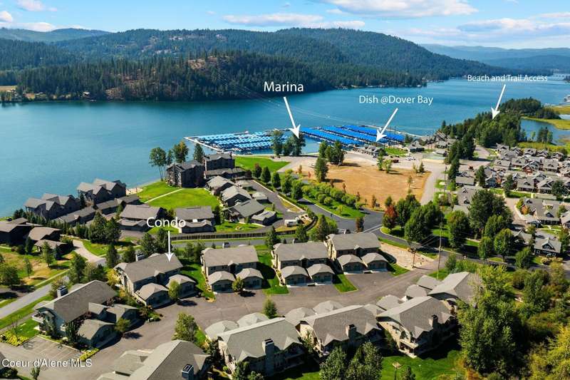 Impeccable Bayside South condo on the second floor offers peace and privacy with views of the Pend Oreille River. Two bed, 2 bath layout features a gas fireplace, lovely wood finishes with wood blinds throughout, fans in each room and easy maintenance LVP flooring. Open concept living, dining and kitchen makes for the perfect gathering place, with views overlooking the river and loads of natural light. A spacious office can double as a play room or even third bedroom when needed. Ideally situated with southern-facing views and privacy from neighboring units. Relax on the deck and enjoy a morning coffee or evening sunset. A detached oversized 1-car garage offers storage and parking. Soak up the vacation lifestyle with close access to all Dover Bay's amenities, including the marina, pool, gym, community beach and miles of trails. Three miles biking or driving distance to Sandpoint, and just over 30 minutes to the top of Schweitzer Mountain.