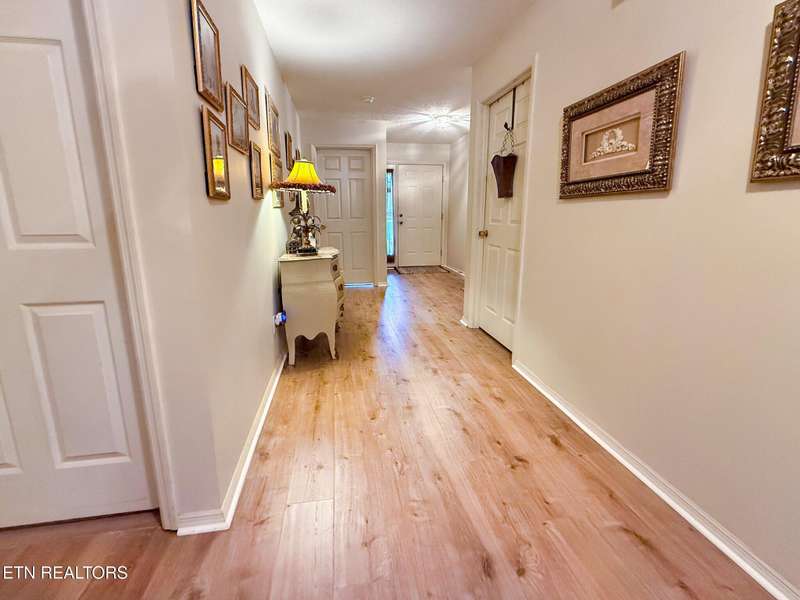 Welcome home to effortless comfort and convenience in this charming single-level residence, ideally located in West Knoxville. With 3 bedrooms and 2 full baths, this thoughtfully designed home offers step-free living and a bright, open layout accentuated by cathedral ceilings and generous natural light. The wide entry and hallway create an inviting flow into the open concept living and dining areas, perfect for everyday living or entertaining. The spacious master suite boasts a large walk-in closet and private bath, offering a quiet retreat. The kitchen features ample cabinetry, a pantry for extra storage, and a functional layout for easy meal prep. Enjoy the bonus of a large laundry room and an oversized one-car garage with a built-in work area and attic access for additional storage. Recent updates include fresh paint, new flooring, and a brand-new water heater-giving peace of mind and move-in ease. Step out back to a serene, tree-lined patio and private yard that backs to a quiet, established neighborhood-ideal for morning coffee, quiet evenings, or light gardening. Community amenities include a sparkling pool and picnic area, while HOA fees cover lawn maintenance, exterior upkeep, and trash service-adding convenience to your lifestyle. With close proximity to shopping, restaurants, parks, and major thoroughfares, this low-maintenance gem offers the perfect blend of location, comfort, and peace of mind.