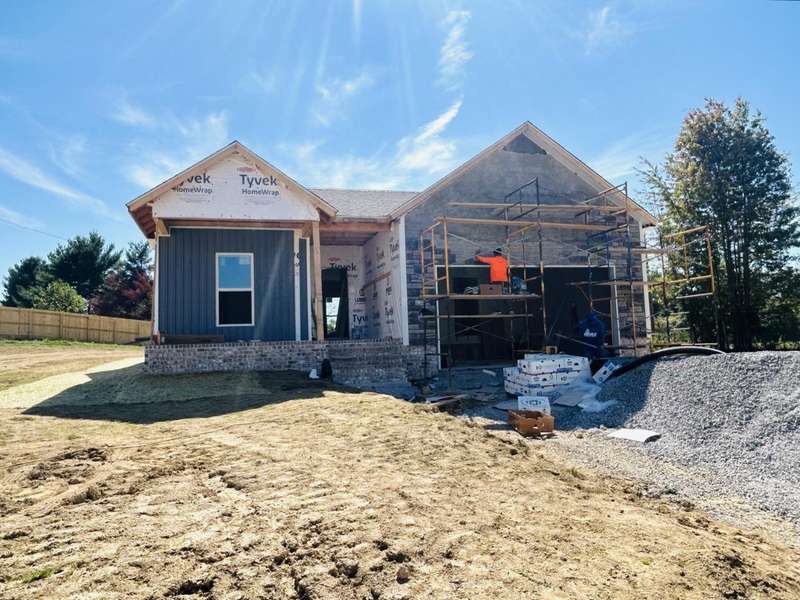 This stylish bungalow is estimated to be completed by November 1st and is located in London's Silver Hawk Subdivision just off Hwy W80/Russell Dyche Pkwy with east access to London, Corbin, Manchester & Somerset and within 2 miles of Wood Creek Lake. This open concept, one level new construction has low maintenance exterior vinyl & stone and situated on a level, easily maintained .34 acre lot. Enter by the covered entry way into a separate interior entry which opens to a 12.8X20 great room looking into the 12X25 combination kitchen/dining area. The kitchen of white cabinetry offers all stainless appliances, granite countertops and breakfast bar with access to the covered rear 12X12 covered patio. A generously sized primary bedroom suite is located at the rear side of the home with an ensuite including double vanity, walk-in closet & large tiled shower. Additionally, two guest bedrooms, 11X11 & 11X12, with guest full bath. No carpet, Luxury Vinyl Plank flooring throughout & all hard surfaced counters. There is a 21X21 attached garage, concrete drive & public sewer! Located off W80/Russell Dyche Pkwy, near Wood Creek Lake, Walmart DC, Industrial Park, Daniel Boone Nat'l Forest & all conveniences! You can be in this home for the holiday!