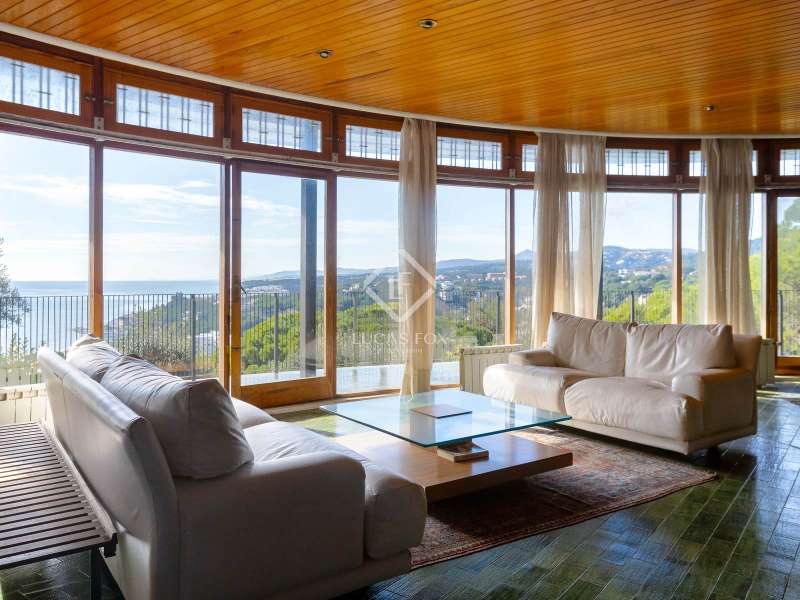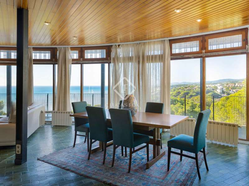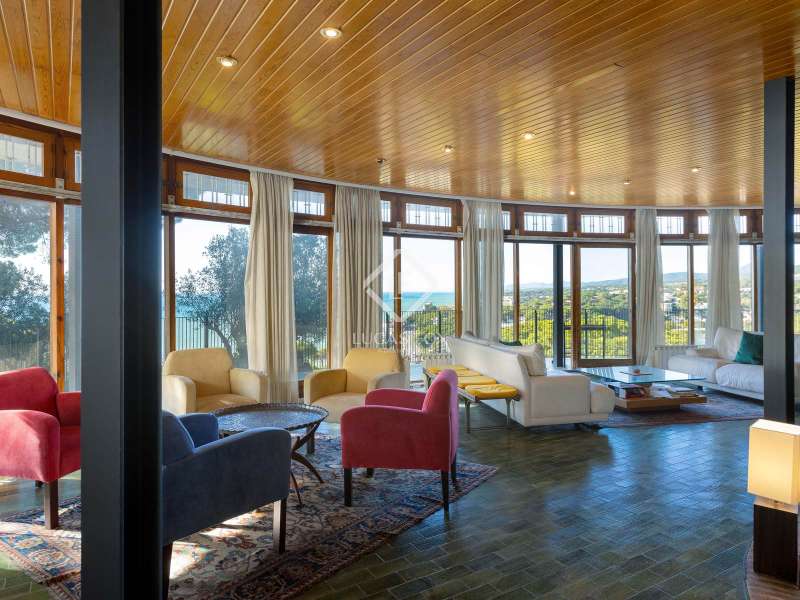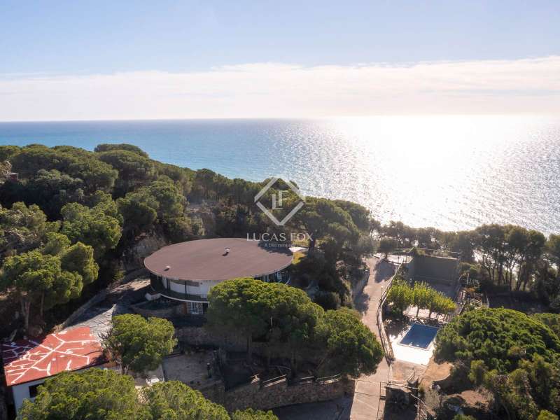 Lucas Fox proudly presents this truly unique architectural gem nestled between the Costa Brava and the Costa de Barcelona. Perched on an elevated 13,000 m² plot, this remarkable estate commands breathtaking panoramic views of the Mediterranean Sea, the charming Sant Pol de Mar, and the lush hills of the Montnegre-Corredor Natural Park. Designed in the 1970s by the renowned Catalan architect Mario Català Nebot, this circular residence stands as a rare example of visionary architecture on the Catalan coast. Its bold geometric form, perfectly integrated with the surrounding landscape, creates an ever-changing dialogue between light, sea, and sky. The property consists of a main circular residence, a guest house, and beautifully landscaped grounds featuring a swimming pool, fronton court, and multiple terraces that invite outdoor living and total privacy. The main residence spans approximately 400 m², including a stunning 90 m² circular porch that offers uninterrupted sea views from sunrise to sunset. Together, both residences offer eight bedrooms and four bathrooms, with the option to expand the living space on the lower level, currently housing a wine cellar, pantry, and gym. The property has a secure double-gated access, and ample potential for further enhancement while preserving its exceptional character. This is a rare opportunity to acquire one of the most distinctive architectural residences on the Catalan coast. Please contact us for further information.