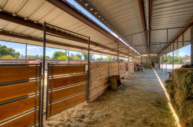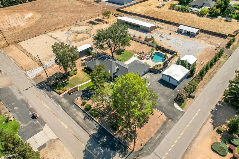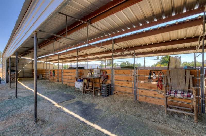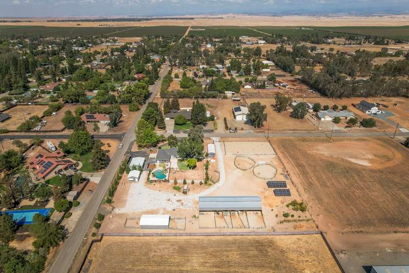 Here is a fabulous horse set up on 2+ acres in the Madera Ranchos area. There is a 6 stall mare motel, horse stable with tack room, a riding arena with a DG base, corrals and it even has an updated spacious home with a gourmet kitchen. Spacious rooms such as an open kitchen into the living room and a very large family room. The gourmet kitchen has modern stainless steel double ovens, a gas cooktop, a subzero doublewide refrigerator and even a built in coffee maker. There is a beautiful salt water swimming pool with a waterfall and fenced for safety. There is also a large RV garage on the property. 32 solar panels help keep the true up bill near zero. The solar panels have an assumable loan at 1.9% payable at only $233. pm. Madera County water system supplies the property for only $88 pm. Enjoy the orchard with peach, apple and lemon trees. View the photos for an extra good look!.