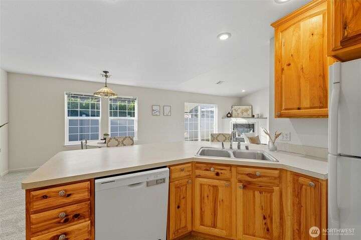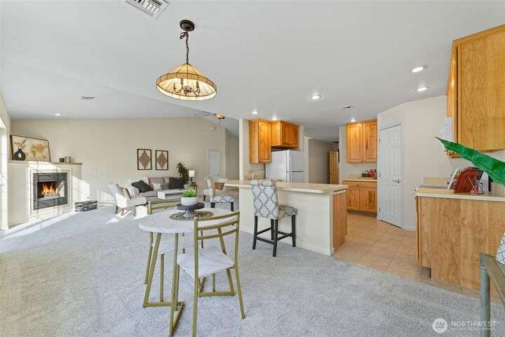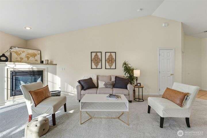 Welcome home! This inviting residence features an open floor plan with brand-new flooring throughout, creating a seamless flow from room to room. The split layout offers privacy, while the cozy gas fireplace adds warmth and charm to the living area. A front bedroom with French doors makes an ideal office or den, perfect for work or relaxation. Step outside to a lovely patio for outdoor enjoyment. Located on a short, quiet cul-de-sac, this home combines comfort, style, and convenience in a peaceful setting.
