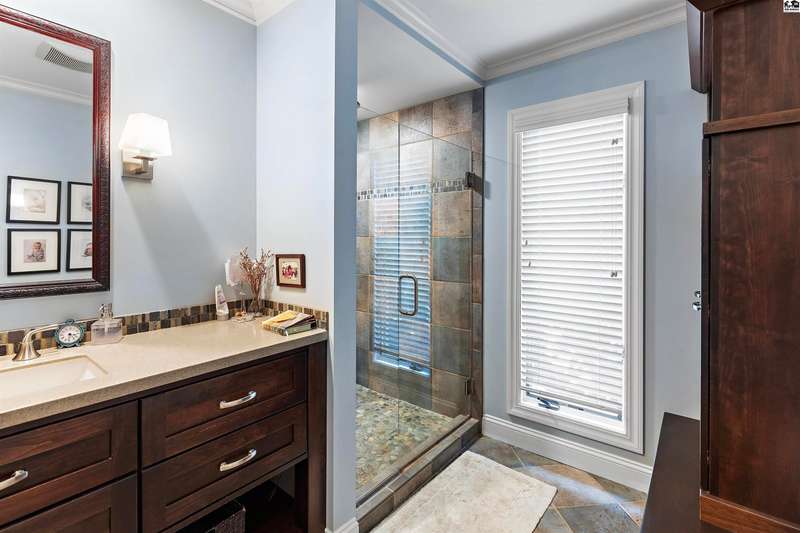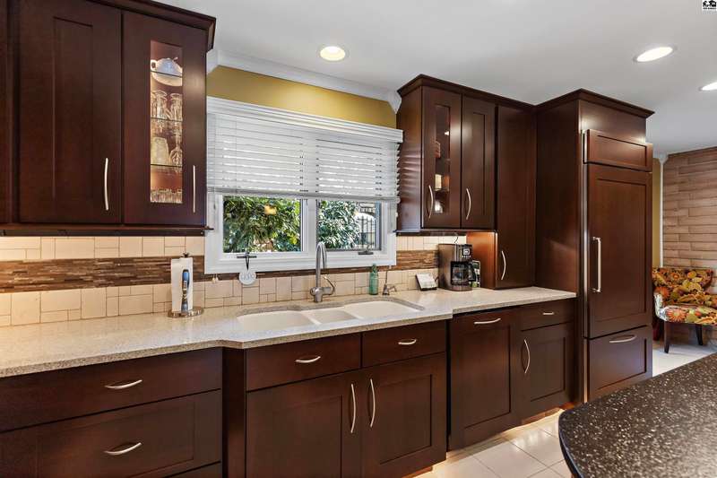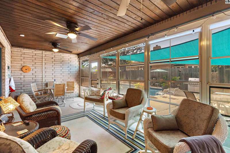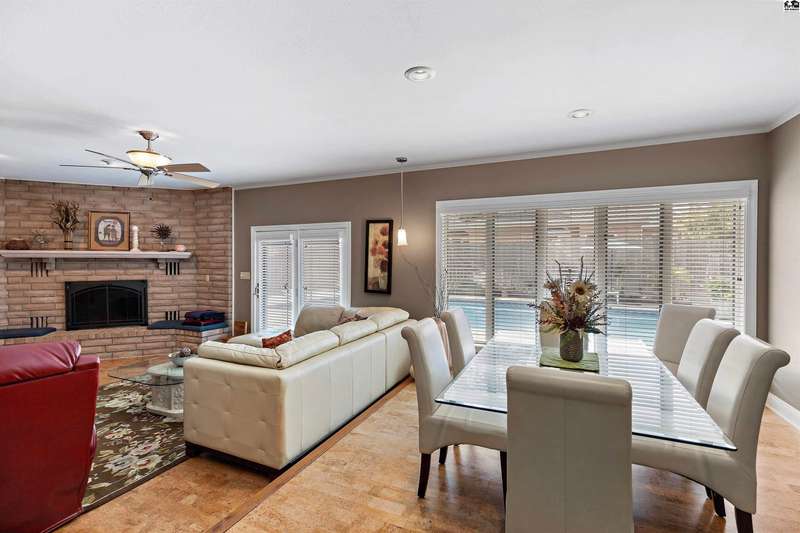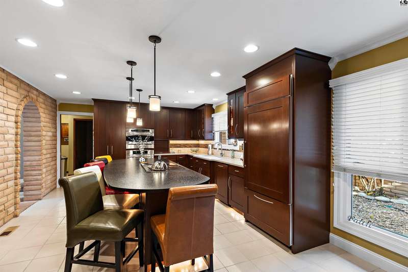 From the circle drive to the courtyard, the foyer welcomes with a view to the living room, a stunning brick fireplace and the saltwater inground pool and patio. This three bedroom three bathroom home feels like a resort vacation. Enjoy an elegant Bartel custom kitchen, formal dining, three season sunroom, pantry and mudroom. The kitchen boasts a large quartz island with center cooktop for great conversations or casual dining, all complemented by a full stainless steel appliance package (Sub-Zero fridge, dual ovens), quartz countertops, tiled floor, The formal dining room sports cork flooring and a view of the pool. The spacious living room is wrapped in a custom brick wall, enhanced by the woodburning fireplace, and views of the pool. The primary suite experience includes oak floors, a nice sized closet, walk-in shower, radiant heat in the bath floor and patio doors to the pool. Two more bedrooms served by a hallway bath are spacious, all closets feature custom shelving. Appreciate quartz and onyx treatments in all the bathrooms. Outside, the saltwater pool, a steam sauna and secluded smokeless firepit convo area delight. Dual pane insulated windows, smart thermostat, all electric with air to air heat pump, updated custom lighting throughout, UGS and an oversize two car garage all for the discerning new owner. The partial basement has a small room for office, exercise or crafts and a mechanical room. Meticulously maintained. Come see and fall in love.