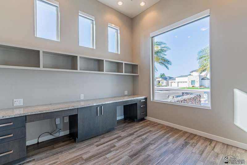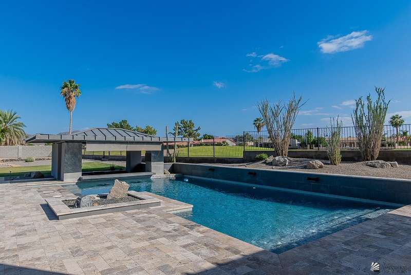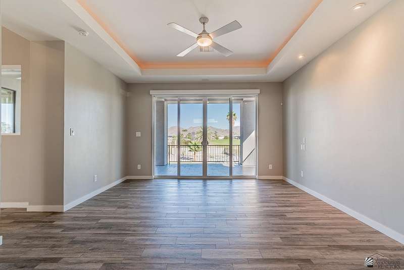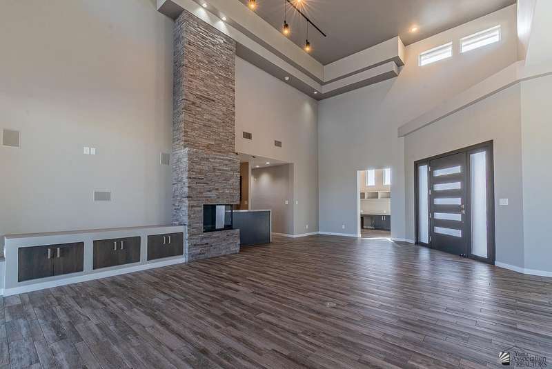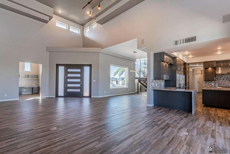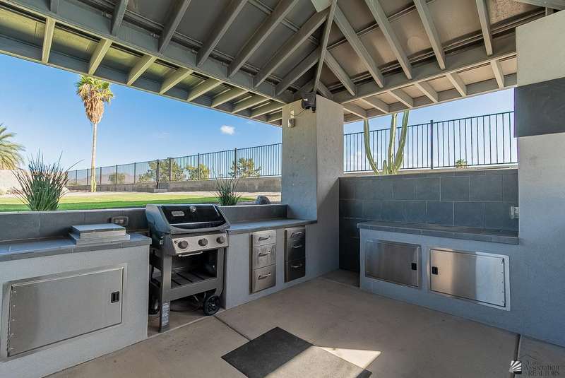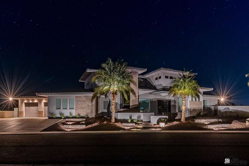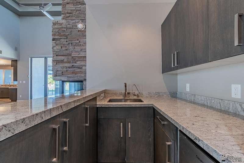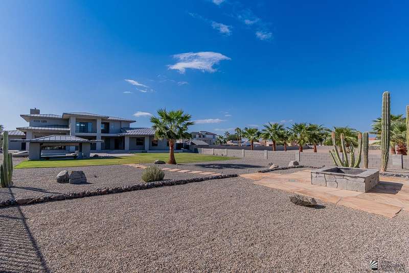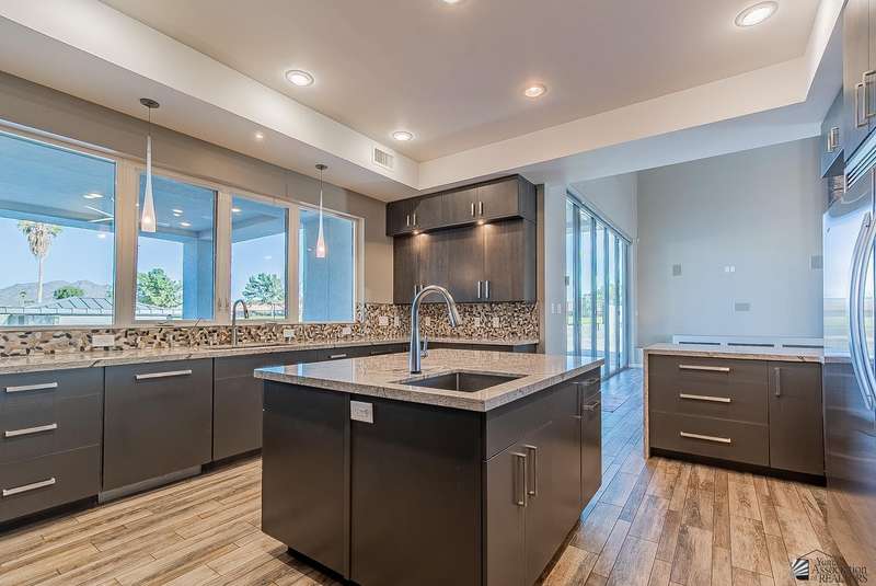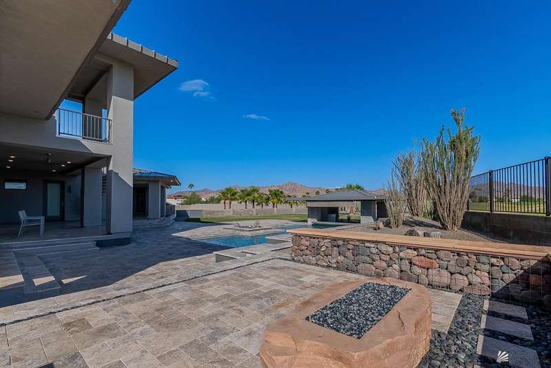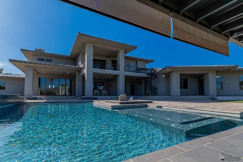 Sophistication at every turn is what you will come to expect when viewing this magnificent corner lot home. From the moment it comes into view, you will find yourself enamored by the sweeping mountain and golf course backdrop that will leave you daydreaming of endless possibilities. The interior is just as impressive as the exterior, featuring soaring ceilings in the great room, modern wood-plank tile, a statement floor-to-ceiling fireplace, a wet bar, and folding patio doors that open to the luxurious, resort-style pool area. The kitchen is a dream offering top-of-the-line appliances, custom cabinetry, an island with a prep sink, eye-catching backsplash and a generous pantry. The primary suite offers a sitting area, grand walk-in closet and sliding glass doors that lead to a private balcony. Enjoy having additional spaces such as an office, fitness room, utility room and a foyer. The expansive backyard offers more than just a remarkable pool area; you will also find a complete outdoor kitchen, a fire pit, and guest quarters; a true entertainer's dream. Let's not forget to mention this home sits on almost 1.5 acres of land, leaving plenty of room for you to build an RV garage or workshop. This home has been architecturally designed with exquisite taste in mind, you will not be disappointed. Schedule your exclusive tour today.