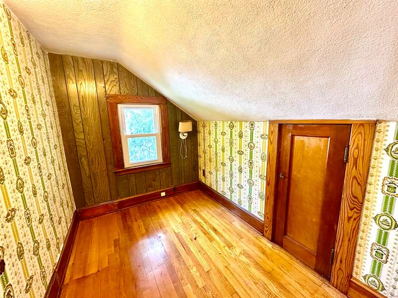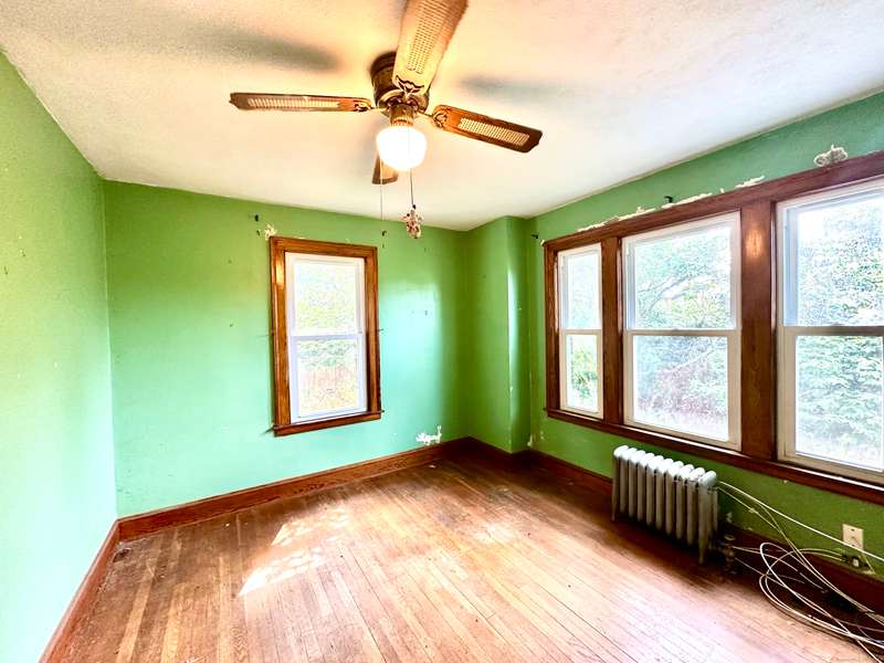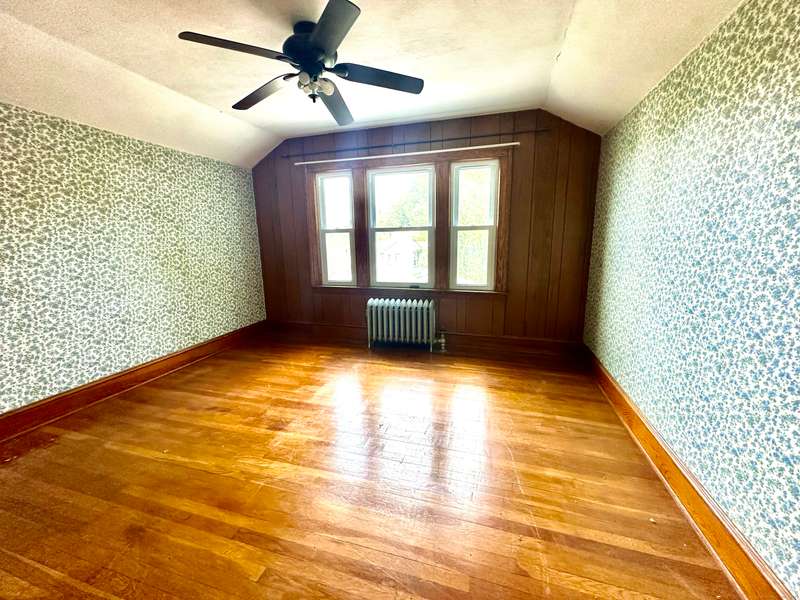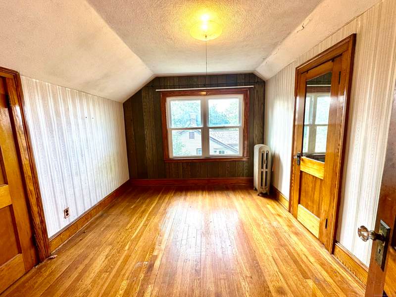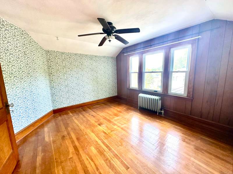Great value! Your sweat equity will go a long way in this gem of a house! Enjoy high ceilings, natural woodwork and overall great space with 1355 square feet of finished living space and the possible opportunity to expand in the lower level. Located on a quiet street with a one car detached garage, the location is convenient with easy highway access and more. The main level has a spacious living room with fireplace, dining room and den all with hardwood floors. The kitchen has gas cooking and a panty area. Upstairs are three bedrooms, all with hardwood floors and good closet space. There is also a spacious full bath on this upper level. One of the bedrooms is rather small and may serve best as a home office. Enjoy replacement windows throughout (2016), gas heat and vinyl siding. The home also has a solar system that is leased. The current monthly payments are approximately $70 per month.