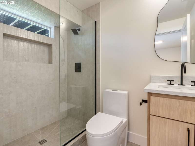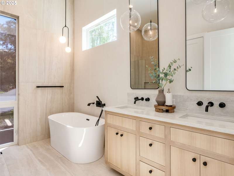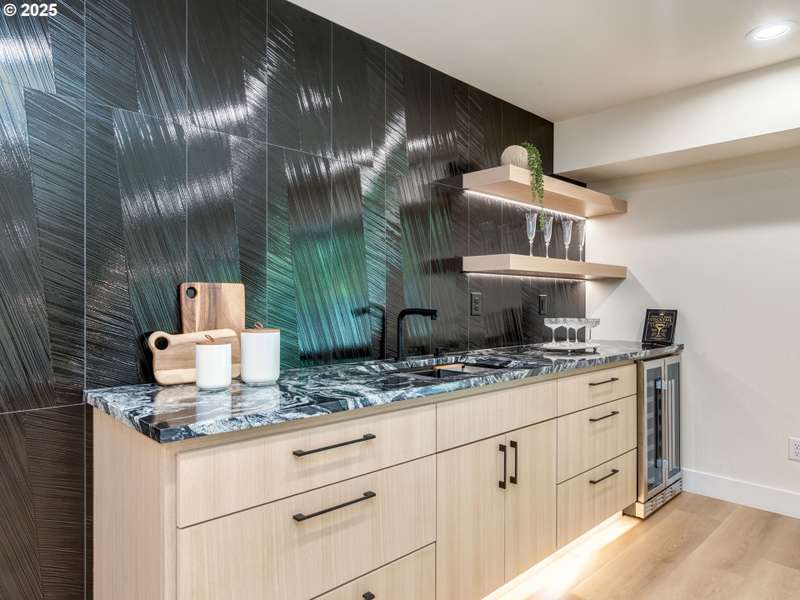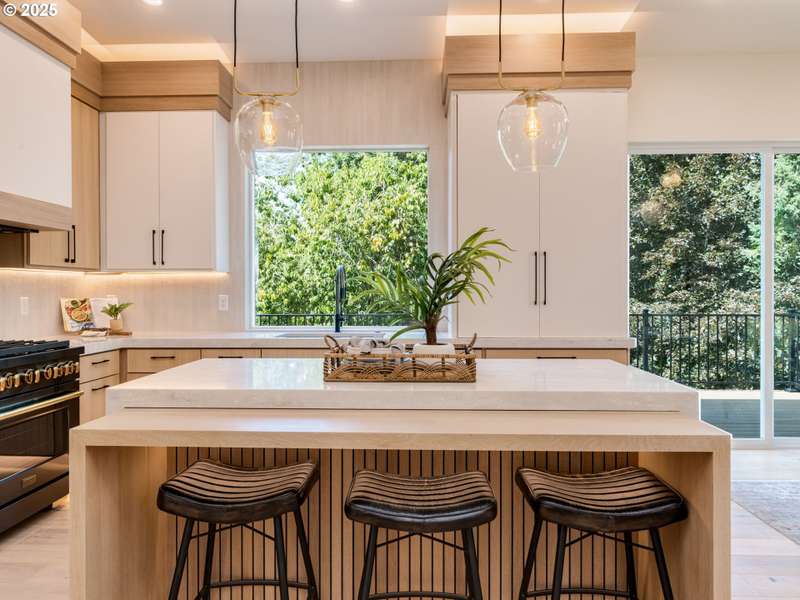 Completely renovated from top to bottom, this stunning daylight ranch in Portland’s Ashcreek–Crestwood neighborhood blends modern design with timeless comfort. Featuring 5 bedrooms, 3 full baths, and 2 half baths across 2,688 sq ft, the home lives large with an open floor plan, soaring ceilings, and abundant natural light. All new systems—including plumbing and electrical—provide peace of mind, while artistic plaster finished walls, Azuro Quartz counters, and designer touches throughout elevate the home’s style. The chef’s kitchen is highlighted by a waterfall island with white oak inlay, premium appliances, and a hidden speakeasy pantry. The generous primary suite is a true retreat with a soaring walk-in closet, spa-like bathroom with a soaking tub, and luxury finishes. The daylight basement adds flexibility with a spacious family room, wet bar with wine fridge, three bedrooms, and 2½ baths—ideal for guests or multi-generational living. Outside, enjoy a private fenced yard, covered patio, and expansive deck for year-round entertaining. A detached two-car garage with EV charging station adds modern convenience. Set on an 11,761 sq ft lot close to parks, schools, shopping, and commuter routes, this home delivers the rare combination of new systems, elegant design, and a prime location.