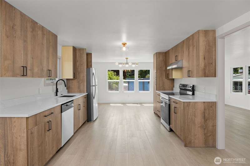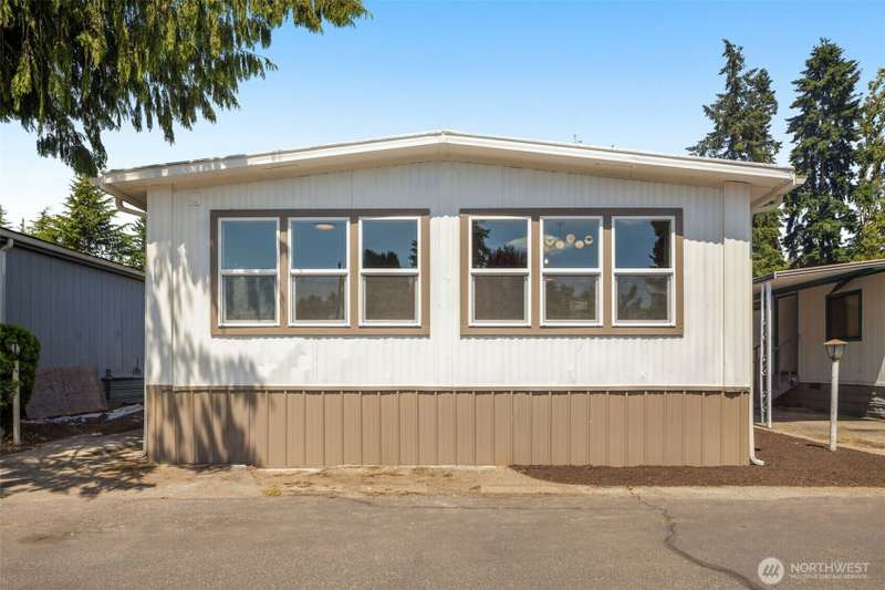 *First 2 months space rent included!* Step inside this beautifully updated home located in the desirable 55+ community of Young's MHP. This 1152 sq ft home offers 3bd/ 2ba including a primary with en-suite bath. Bright and spacious living area leads to the open dining/ kitchen area featuring all-new cabinets and new stainless-steel appliances. You'll find new luxury vinyl plank flooring throughout main living areas and plush carpet in the bedrooms. Thoughtful upgrades include new bathrooms, light fixtures, windows, & doors - every surface has been redone! 2 dedicated parking spots complete the package. Excellent proximity to I-5, light rail, Costco, and restaurants. Truly a must-see! Financing options available!